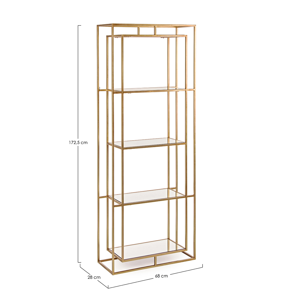 Esta librería independientecuenta con una estructura de acero con recubrimiento de polvo epoxi y estantes de vidrio de 53,5 x 28 cm. Es un diseño contemporáneo y minimalista con líneas geométricas esenciales, para ambientes refinados y elegantes.