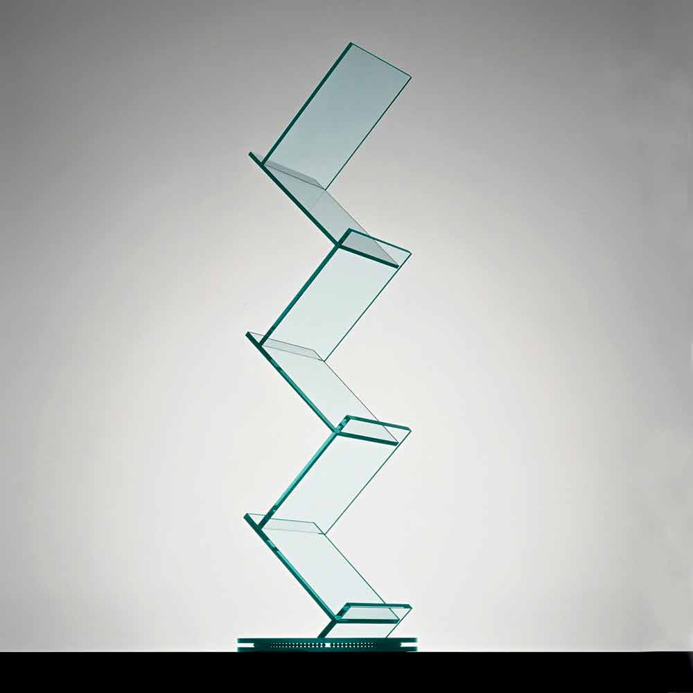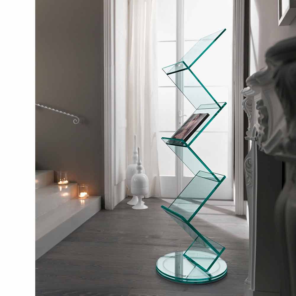 Esta estantería revistero se caracteriza por su diseño decidido y elegante, íntegramente en vidrio transparente.