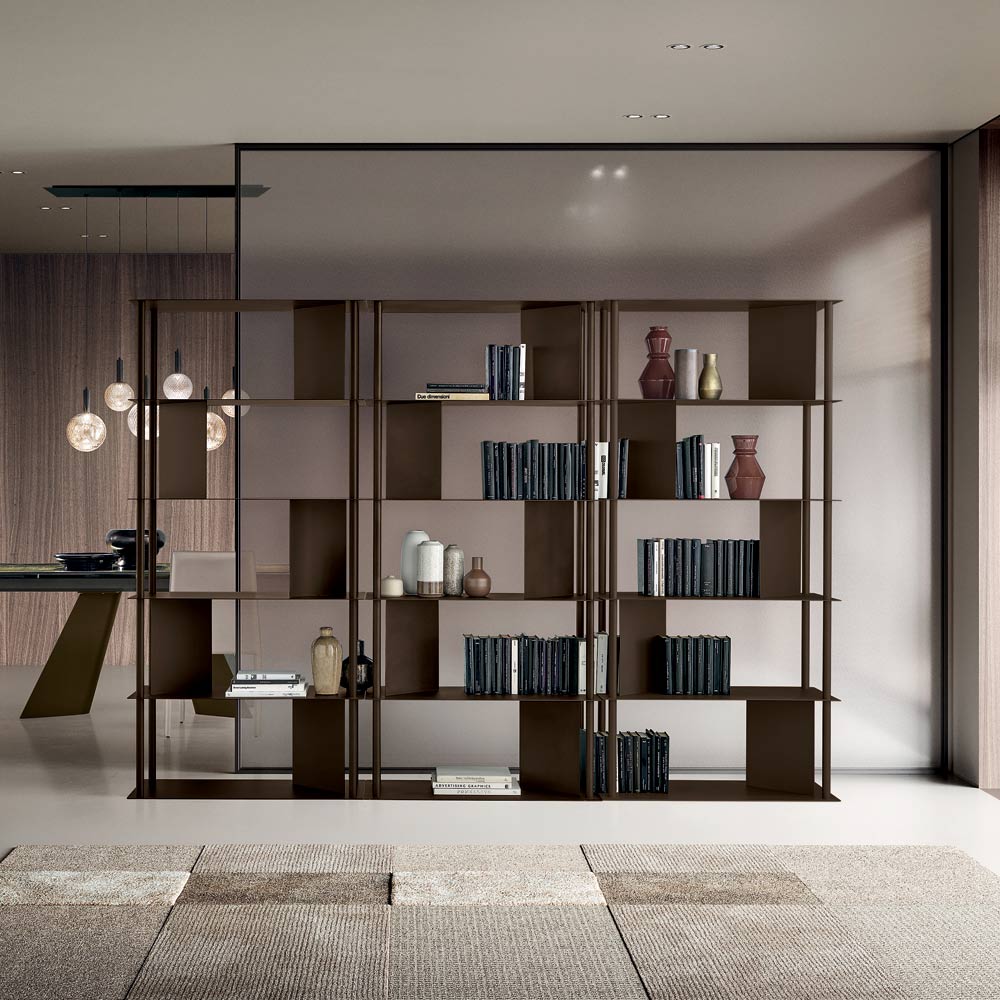 Una elegante librería de diseño, fabricada en Italia , ideal para amueblar con estilo el salón , el estudio o los pasillos. Su diseño contemporáneo destaca por su estructura ligera pero arquitectónica, que aporta equilibrio y personalidad a cualquier espacio.