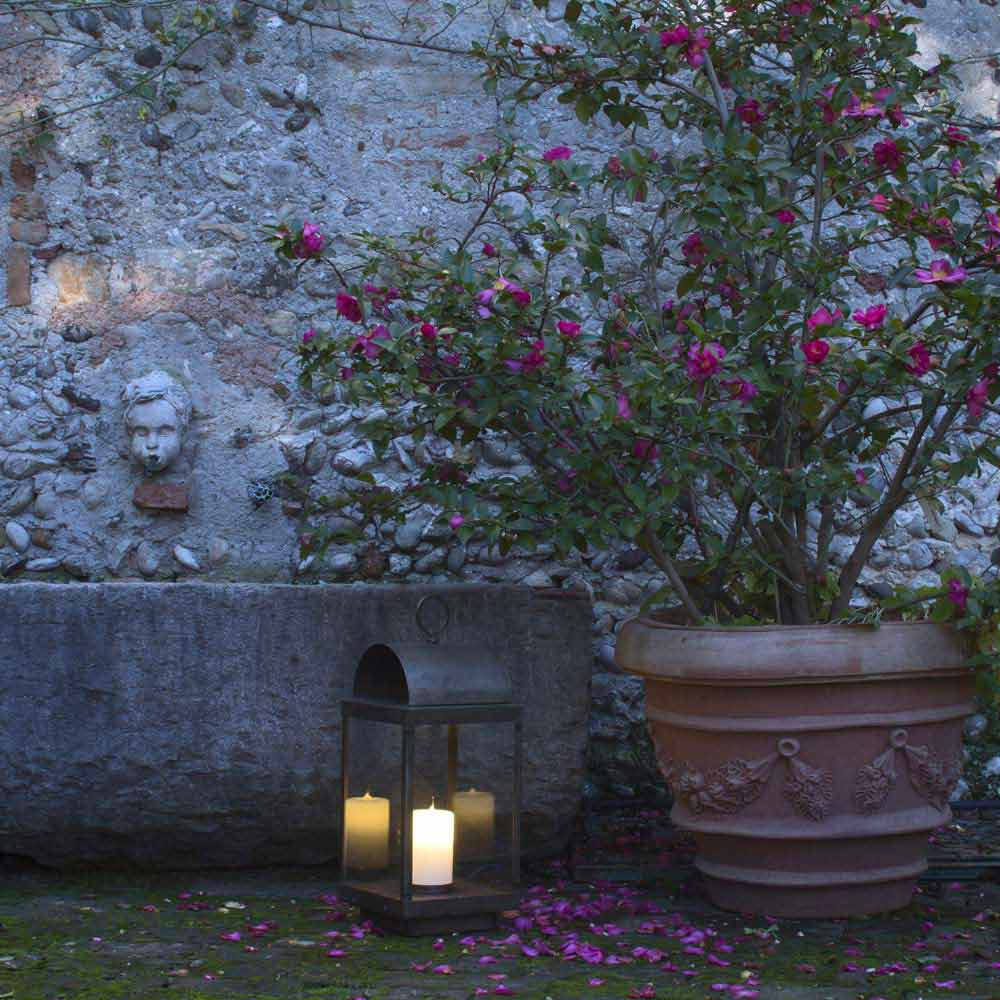Linterna de jardín de hierro o latón con vela Il Fanale Bombillas adaptas: