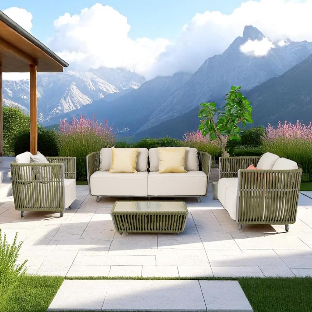 Gracias al uso de materiales especiales de alta calidad, este salón de exterior garantiza una excelente resistencia a la intemperie, la suciedad, el polvo y las manchas.