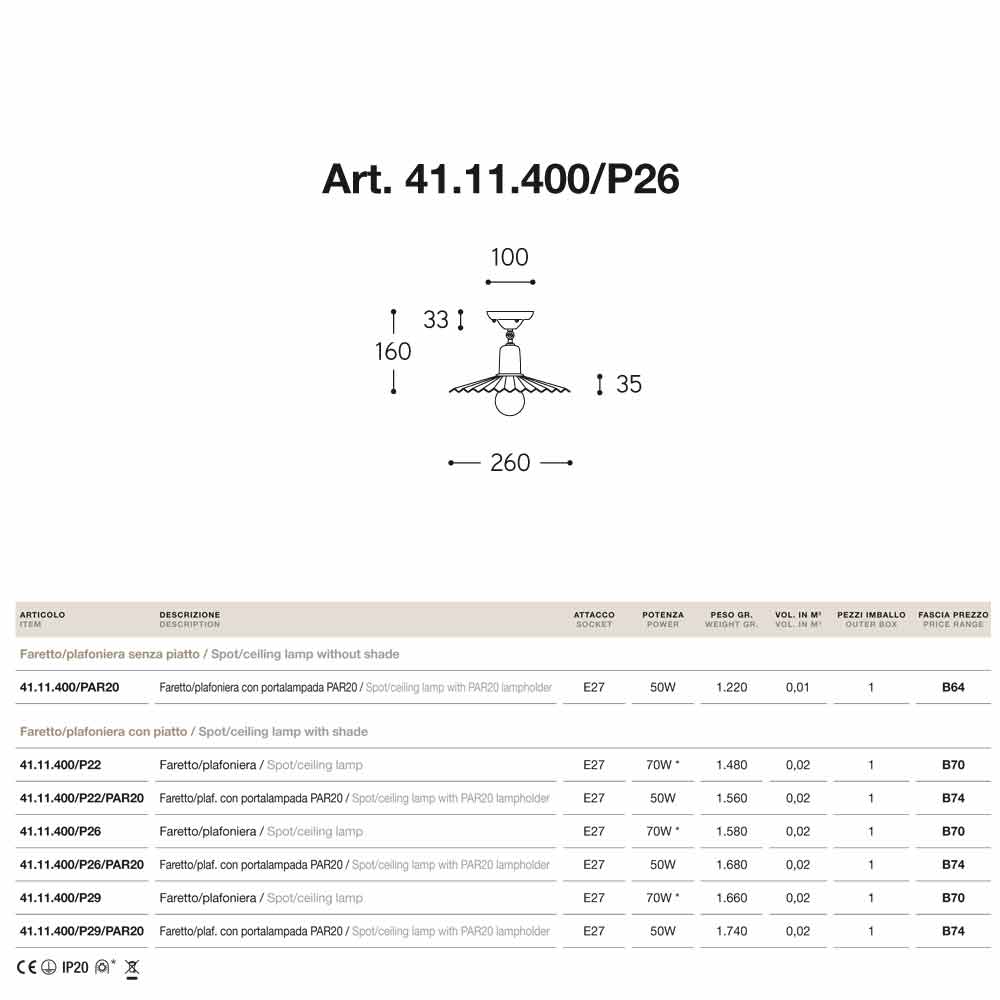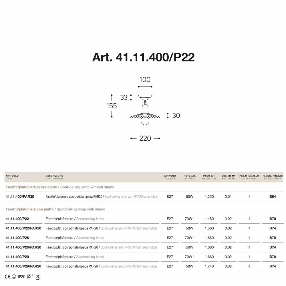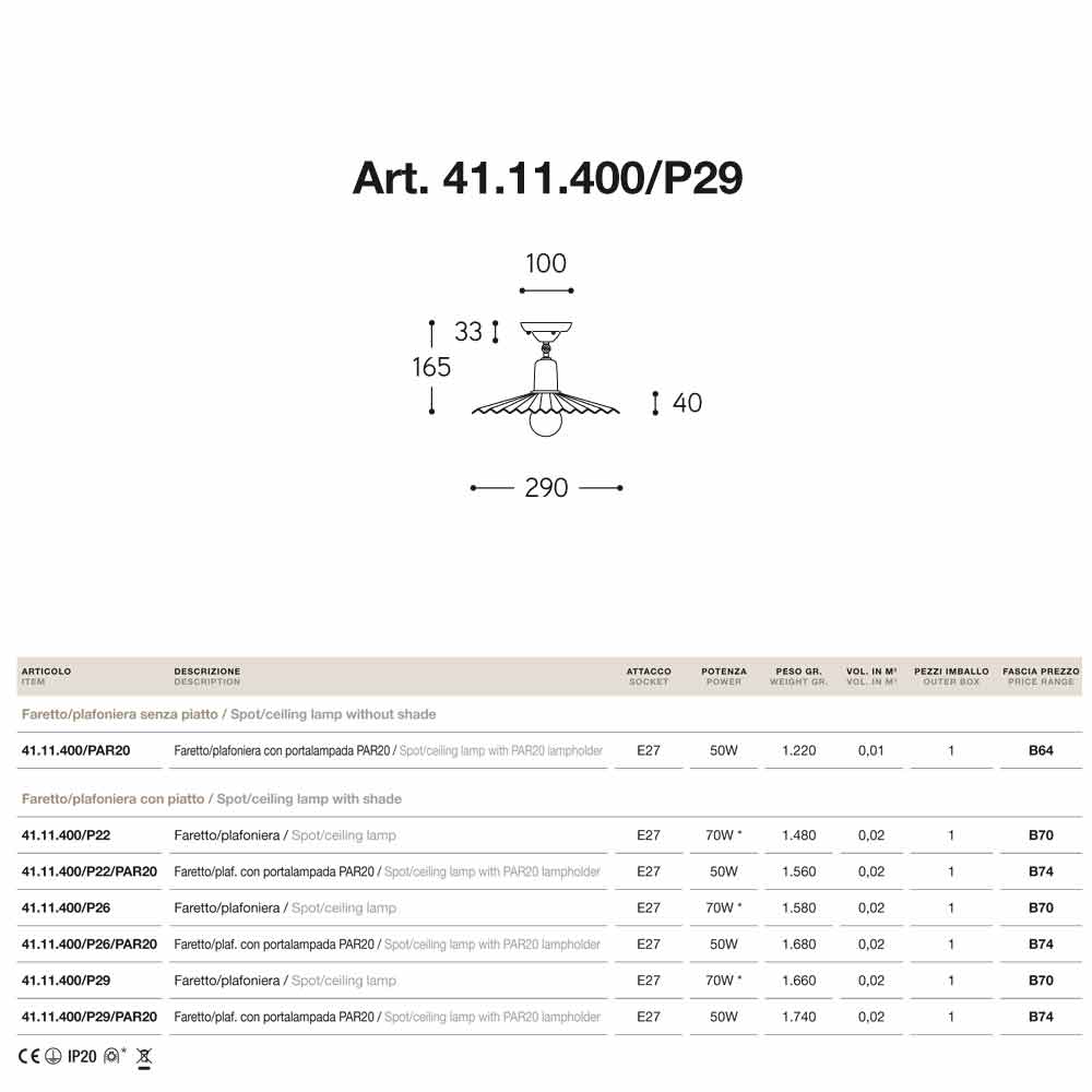 Foco plafón realizado en latón envejecido modelo Civetta