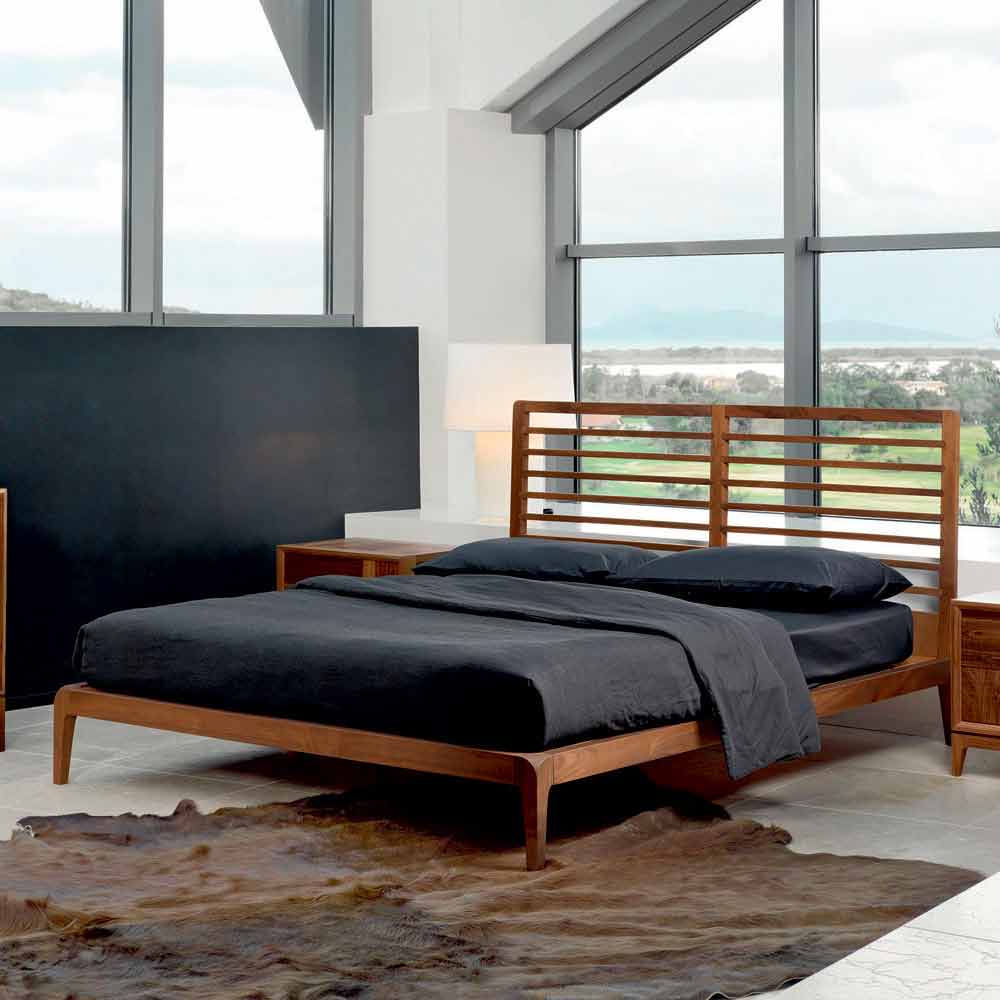 Cama doble en nogal macizo, hecha en Italia, Didimo