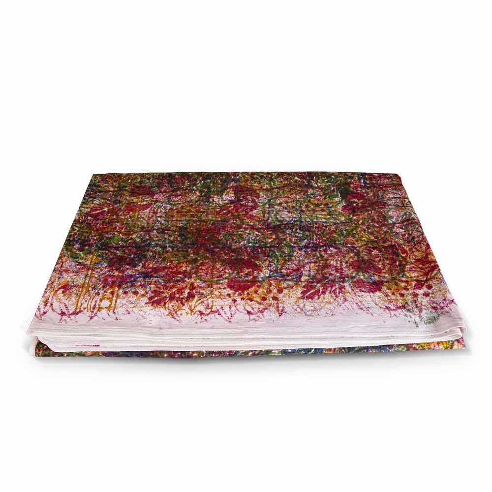 Mantel multiusos (colcha, funda de sofá, funda de mesa) gran pieza rectangular de algodón individual con motivos de colores impresos a mano fabricados en Italia.