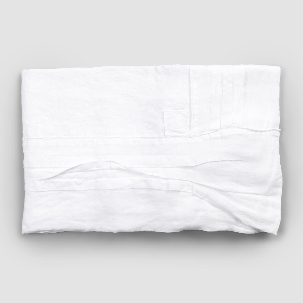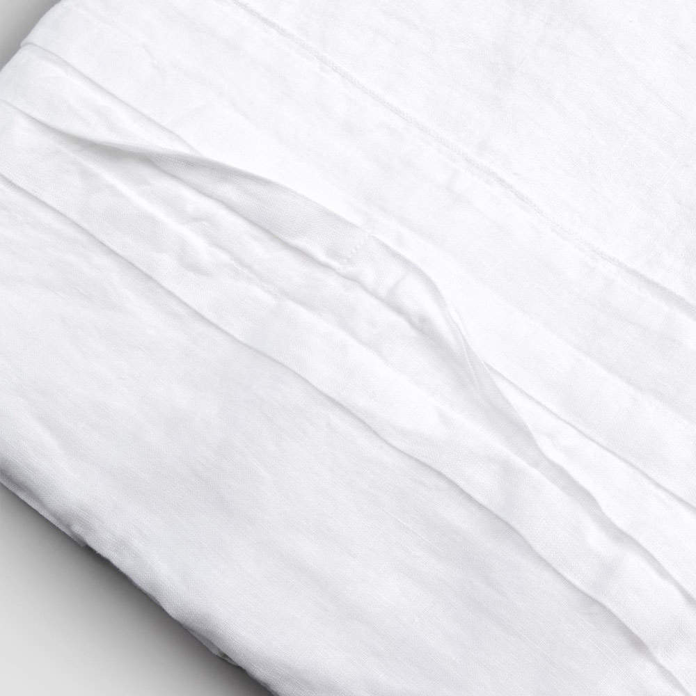 Mantel de lino blanco con cenefa de motivo plisado de lujo italiano - Tippel