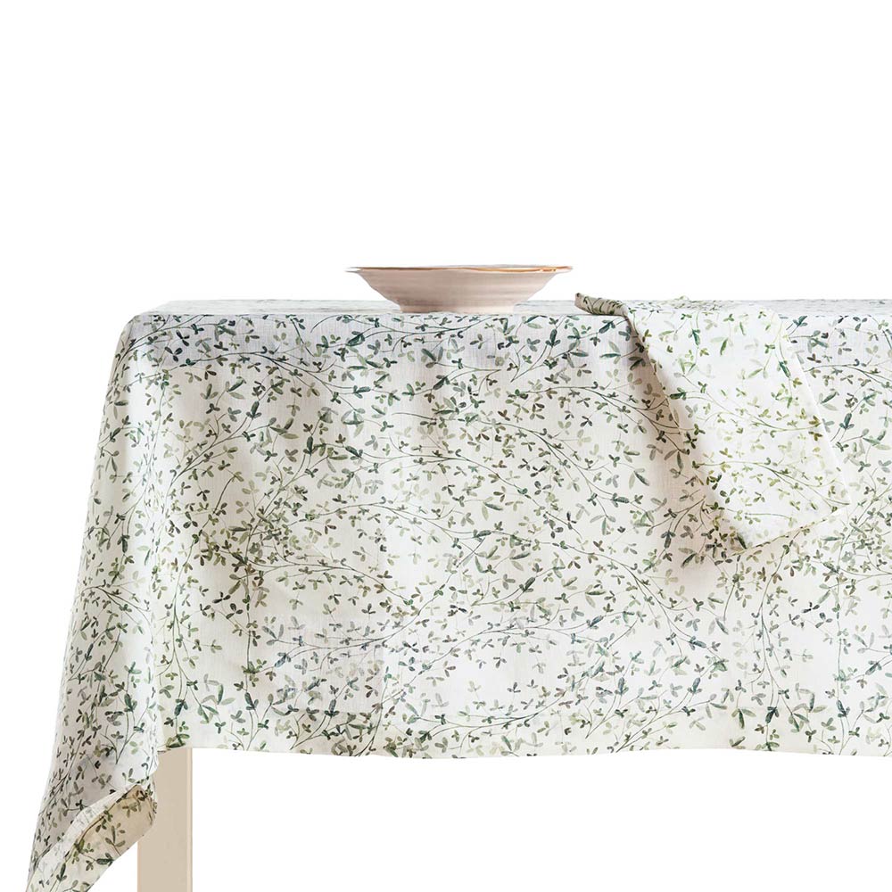 Este mantel estampado de lino puro es una obra maestra de diseño y funcionalidad para tu mesa. La delicadeza de la fantasía vegetal impresa en este mantel no solo enriquece el ambiente con un toque de naturaleza, sino que también realza cada comida transformando tu comedor en un espacio acogedor y con estilo.