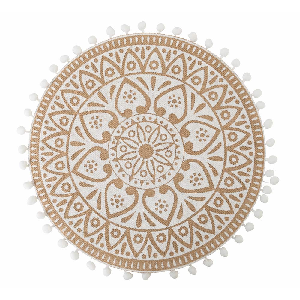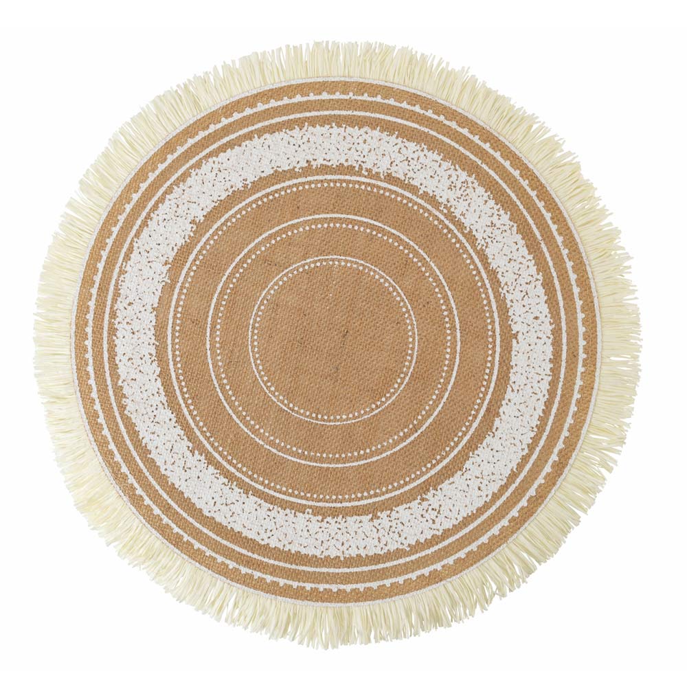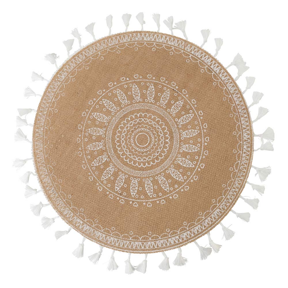 Juego de mantel individual redondo de yute decorado en 3 surtidos blancos, 12 piezas.