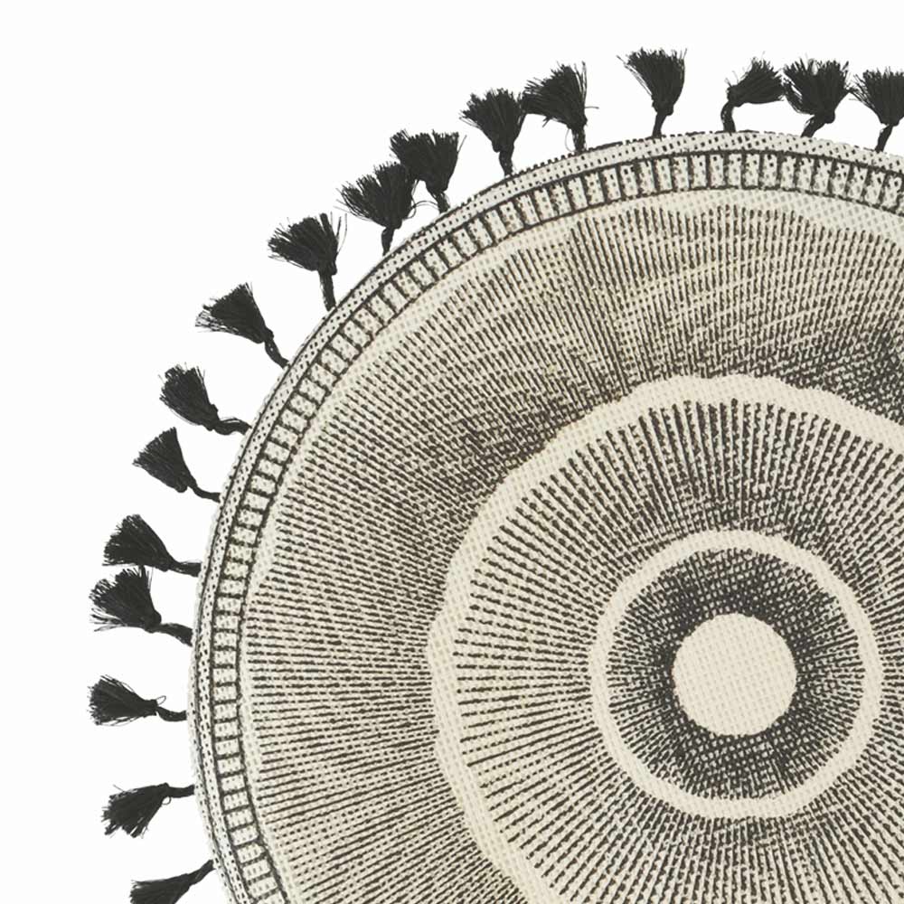 Juego de mantel individual redondo de yute blanco decorado con flecos negros, 12 piezas.
