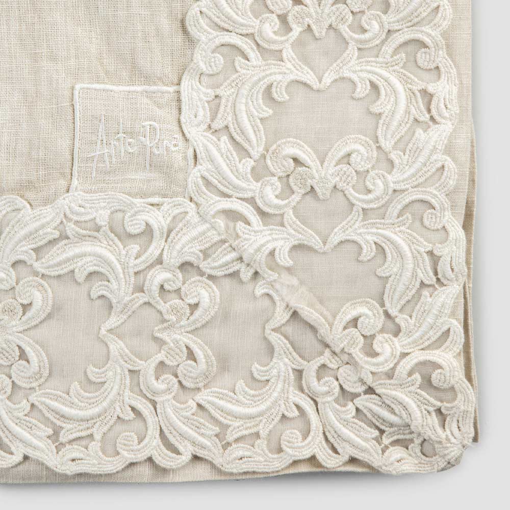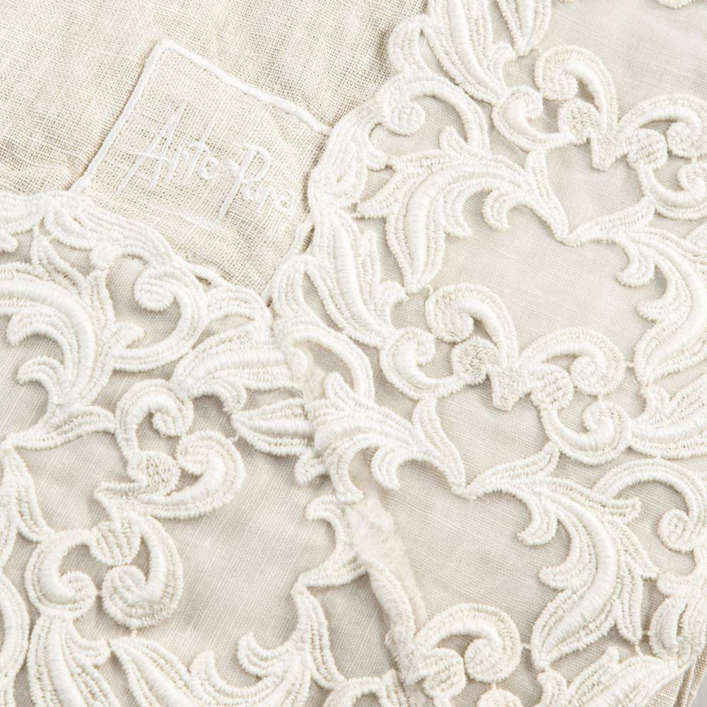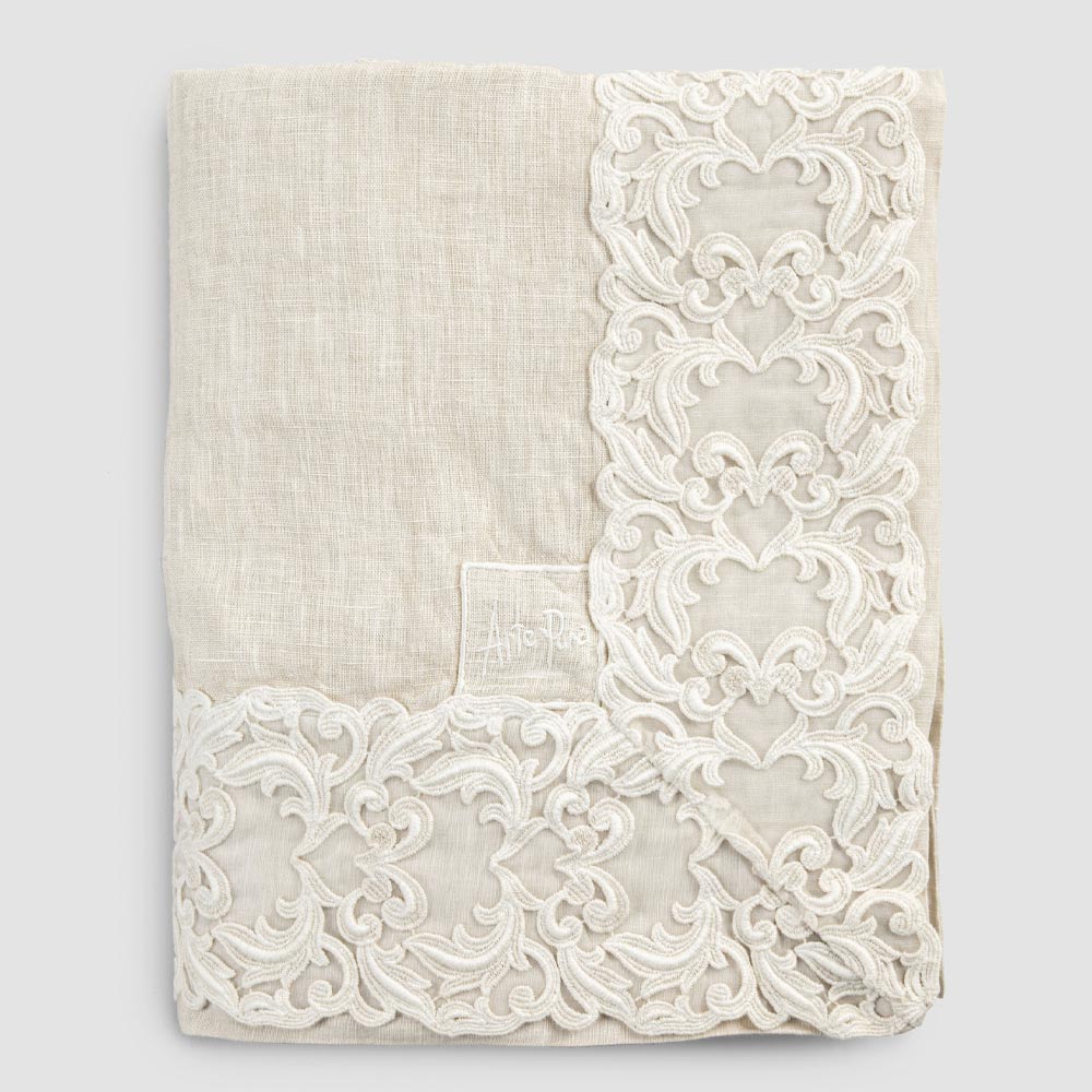 Mantel rectangular de lino beige con encaje artesanal de lujo Farnese - Kippel