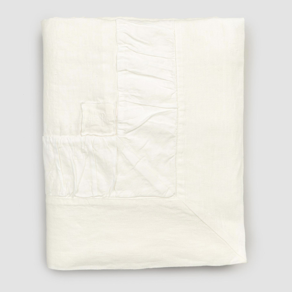 Mantel Rectangular de Lino Blanco, Marco y Borde Plegado en Relieve - Mippel