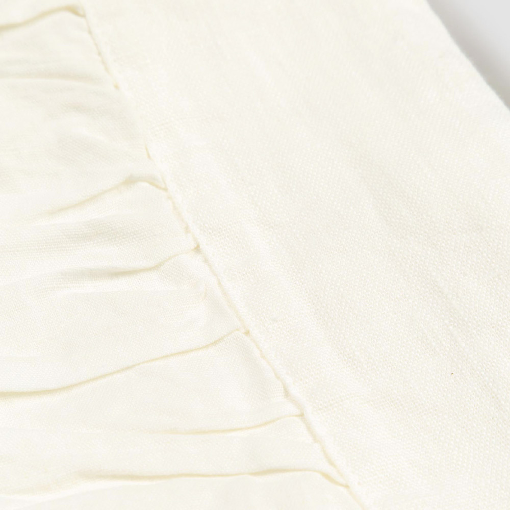 Mantel rectangular de lino blanco con relieve y borde doblado, fabricado en Italia.