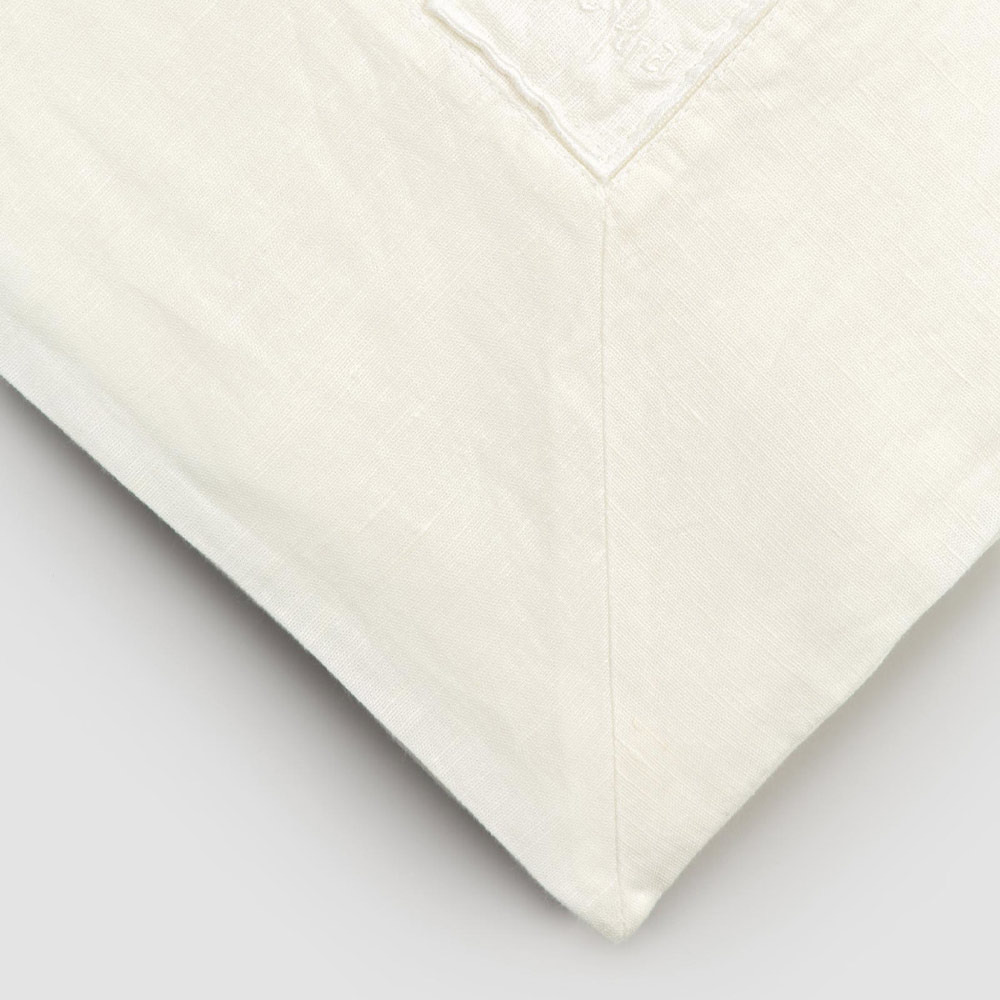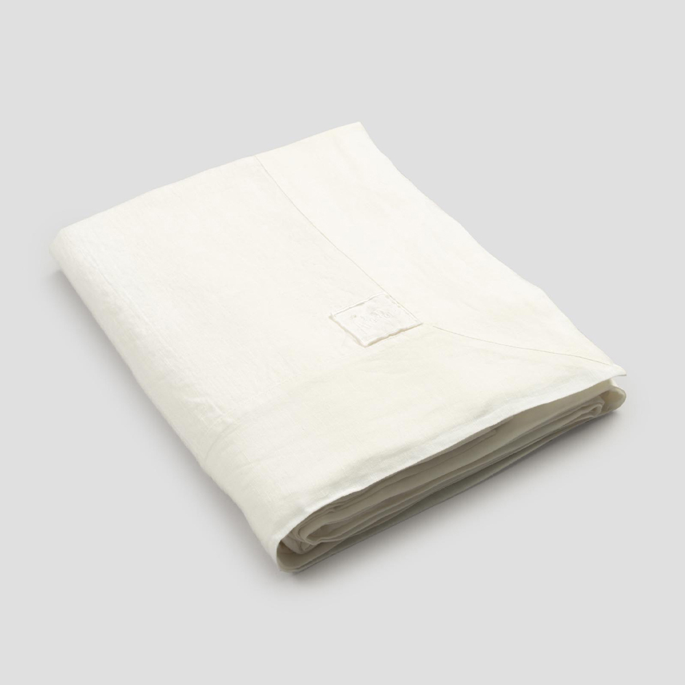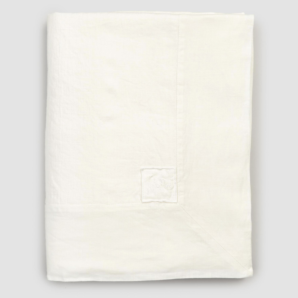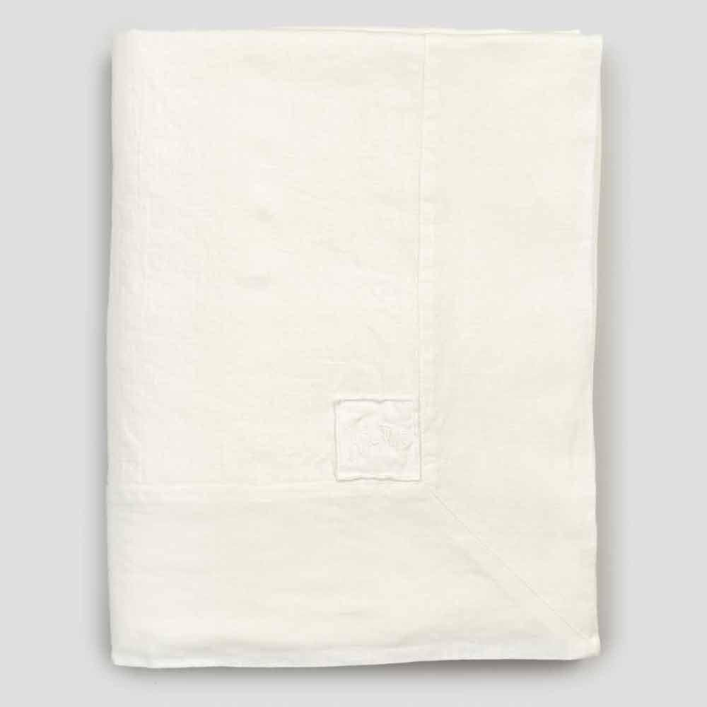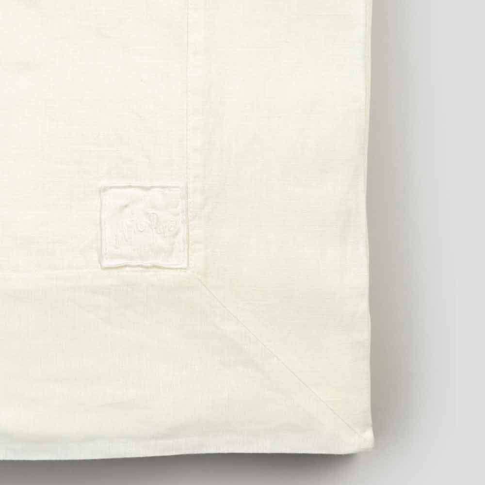 mantel de lino grueso blanco adornado con