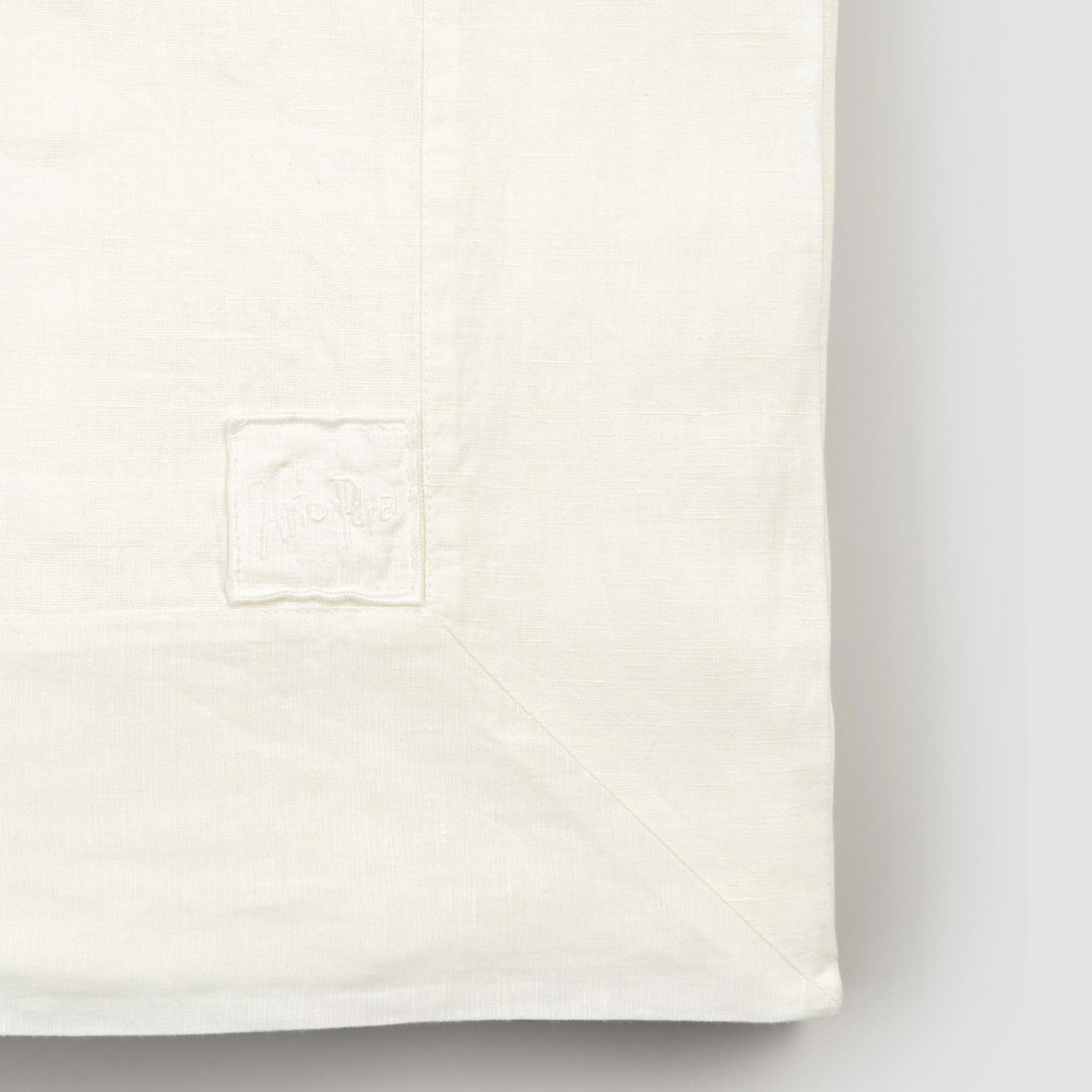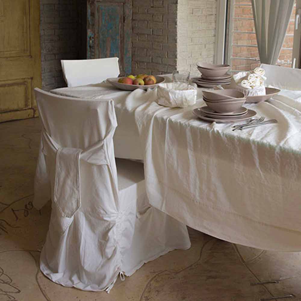Mantel rectangular de lino blanco natural con bordes enmarcados, diseño artesanal de lujo made in Italy.
