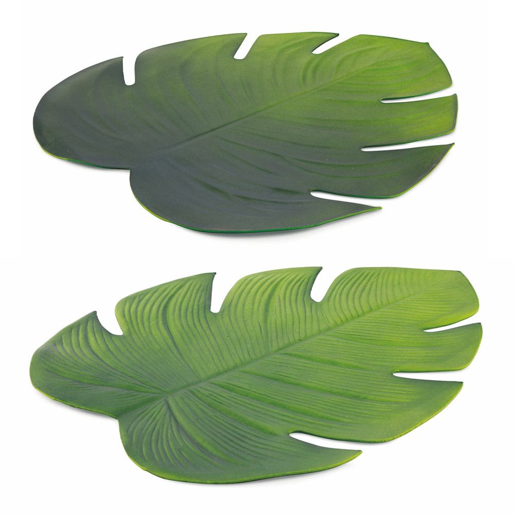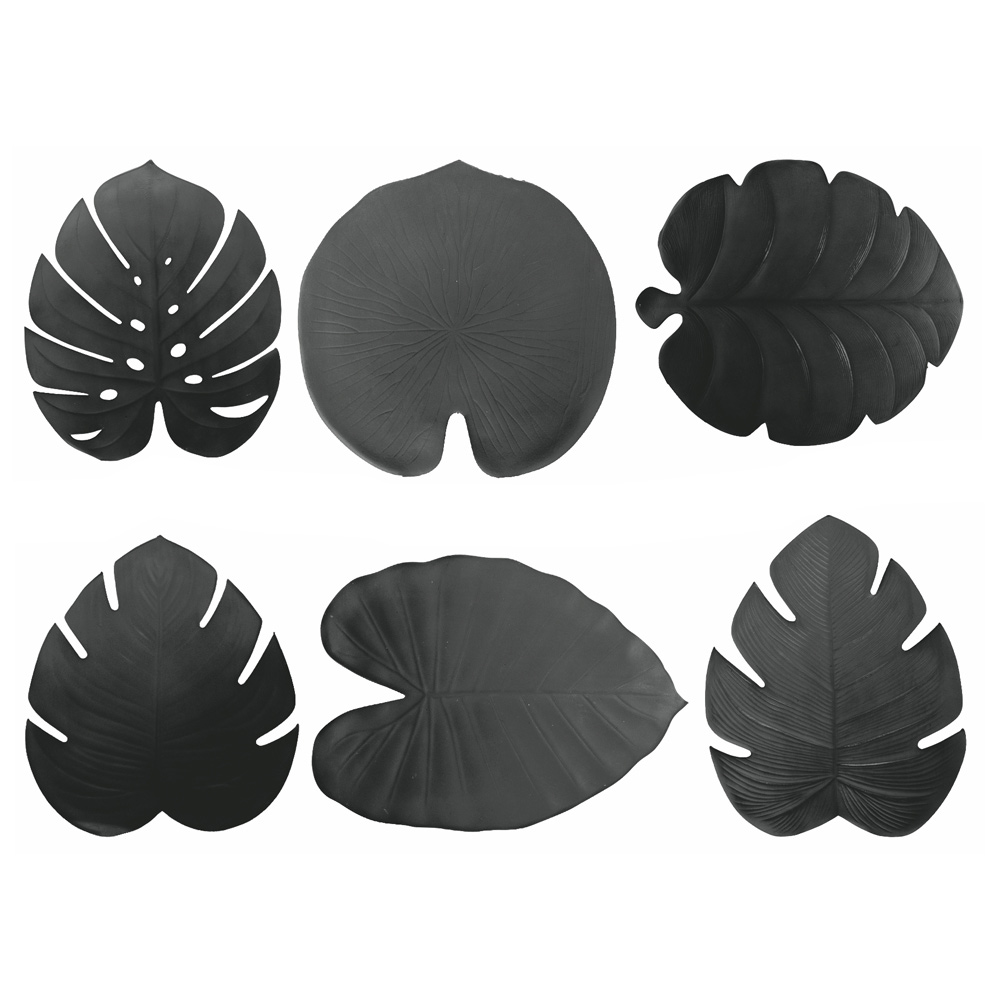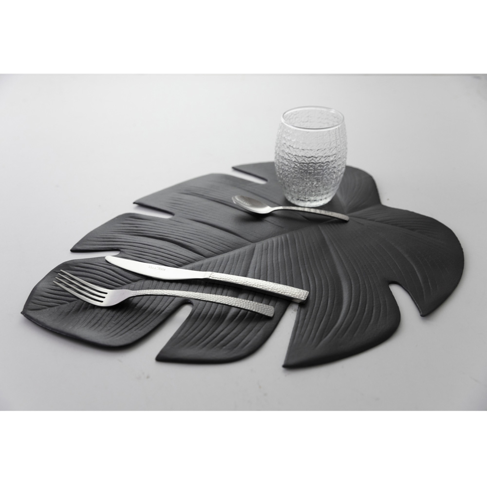 Manteles individuales de plástico con diseño de hojas tropicales en 6 formas verdes o negras, 12 piezas