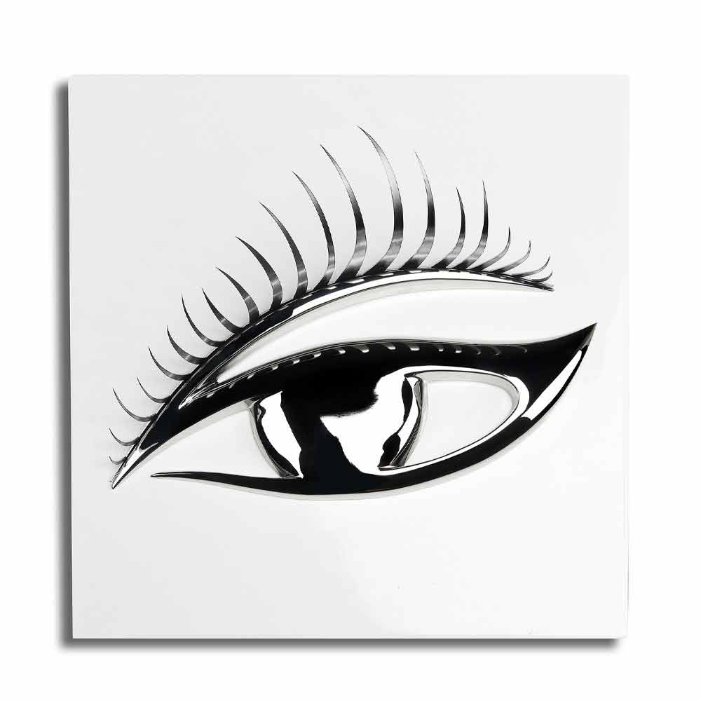 Panel decorativo de pared hecho a mano en Italia en madera lacada con pestañas de acero y ojo de resina con acabado cromado. La elegancia del diseño se une al refinamiento de los materiales para dar vida a un complemento original que puede enriquecer las paredes de tu hogar de manera exclusiva y con una fuerte personalidad moderna . Un objeto elegante que proviene de las manos de hábiles artesanos italianos capaces de dar vida a verdaderas obras de arte gracias al encuentro entre la pasión y un fuerte respeto por las tradiciones transmitiendo técnicas de procesamiento que subrayan el valor y el valor de cada complemento para una alta calidad. resultado .