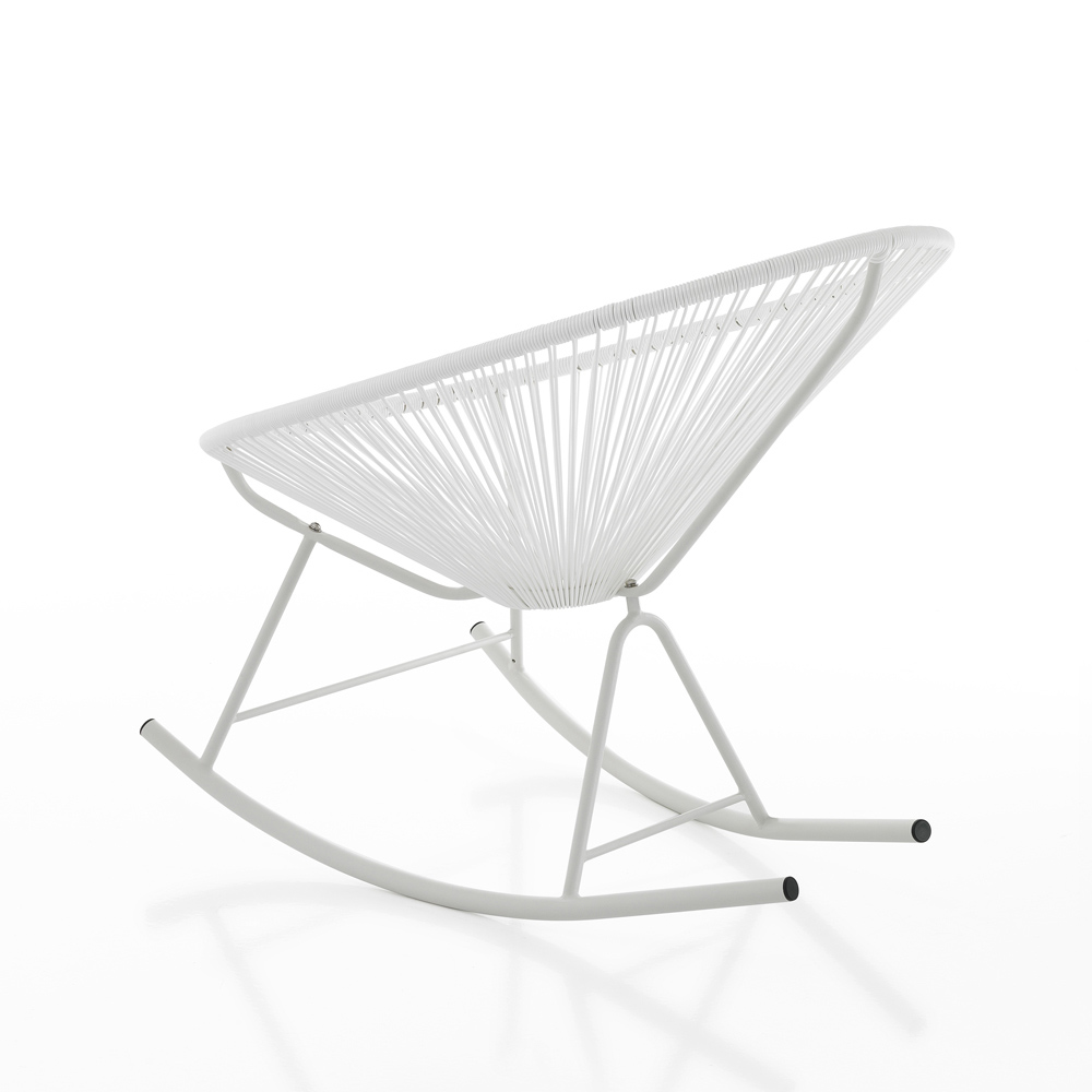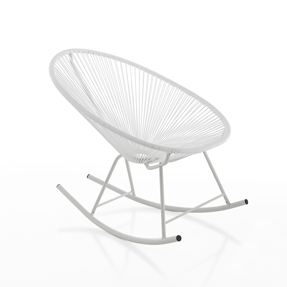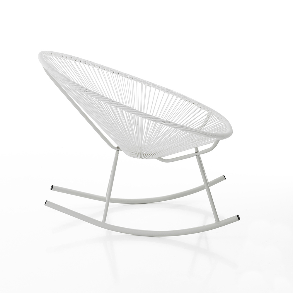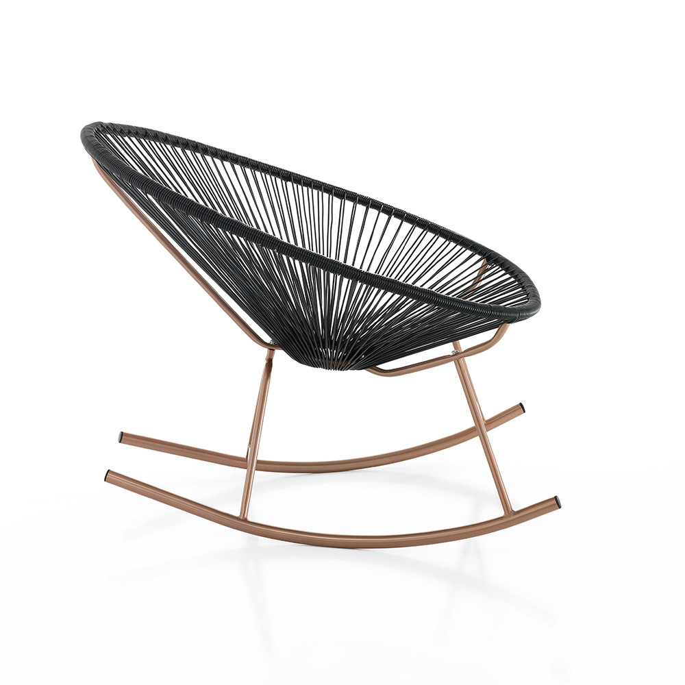 Sillón mecedora realizado con estructura de metal pintado y respaldo en cordón de Polyrattan, íntegramente . Este mueble es perfecto para regalarte momentos únicos de tranquilidad y relajación , dejándote acunar por este fantástico columpio. Los materiales elegidos para la construcción garantizan un asiento cómodo y envolvente pero también resistencia y funcionalidad para colocar el sillón tanto en interiores como en exteriores.