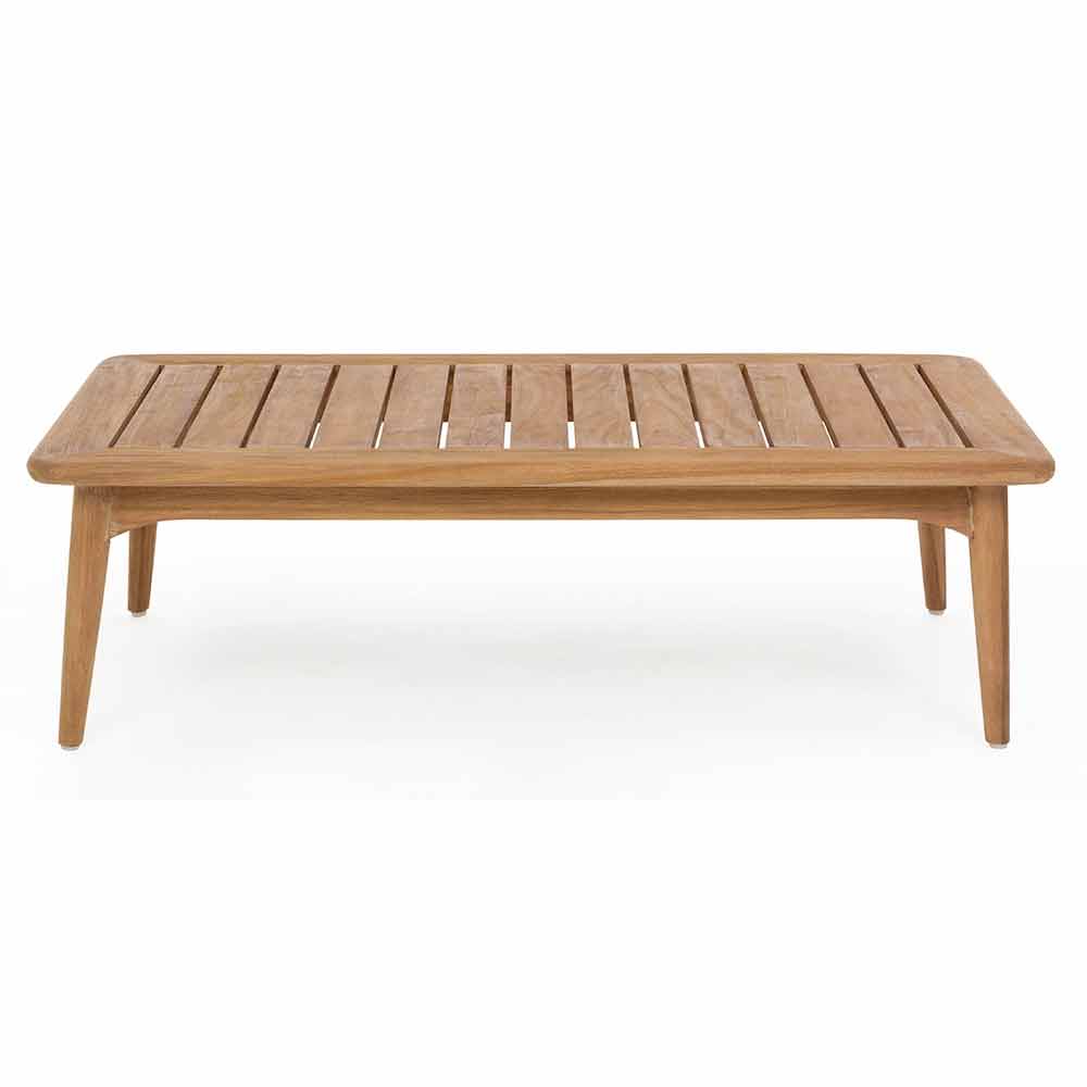 Mesa de jardín de diseño moderno realizada en madera de teca natural.