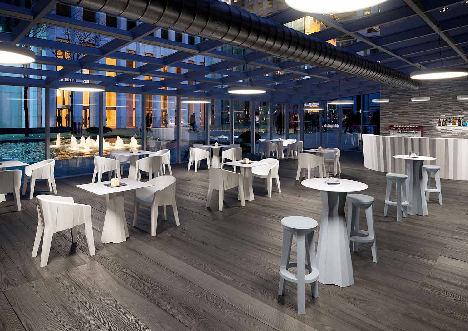 Mesa alta de diseño para exteriores con tapa redonda en hpl Made in Italy.