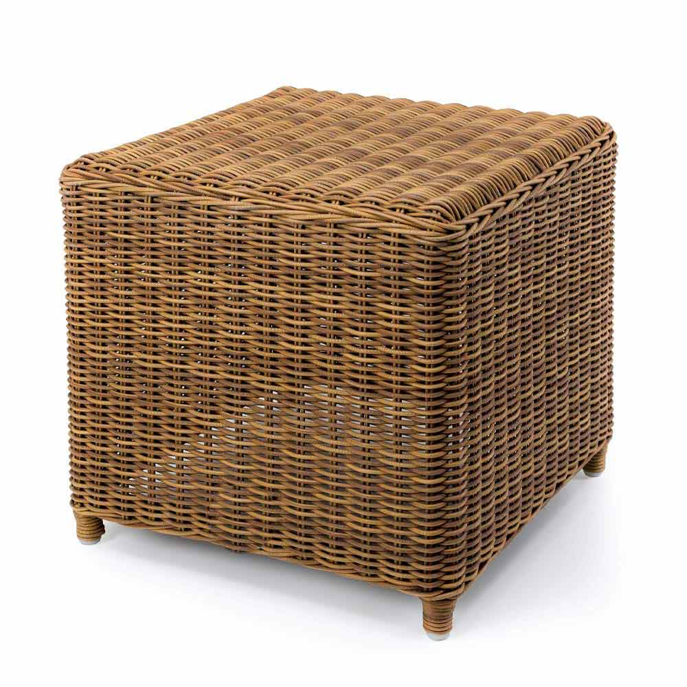 Mesa auxiliar cuadrada en ratán sintético de tejido fino, diseño de lujo.