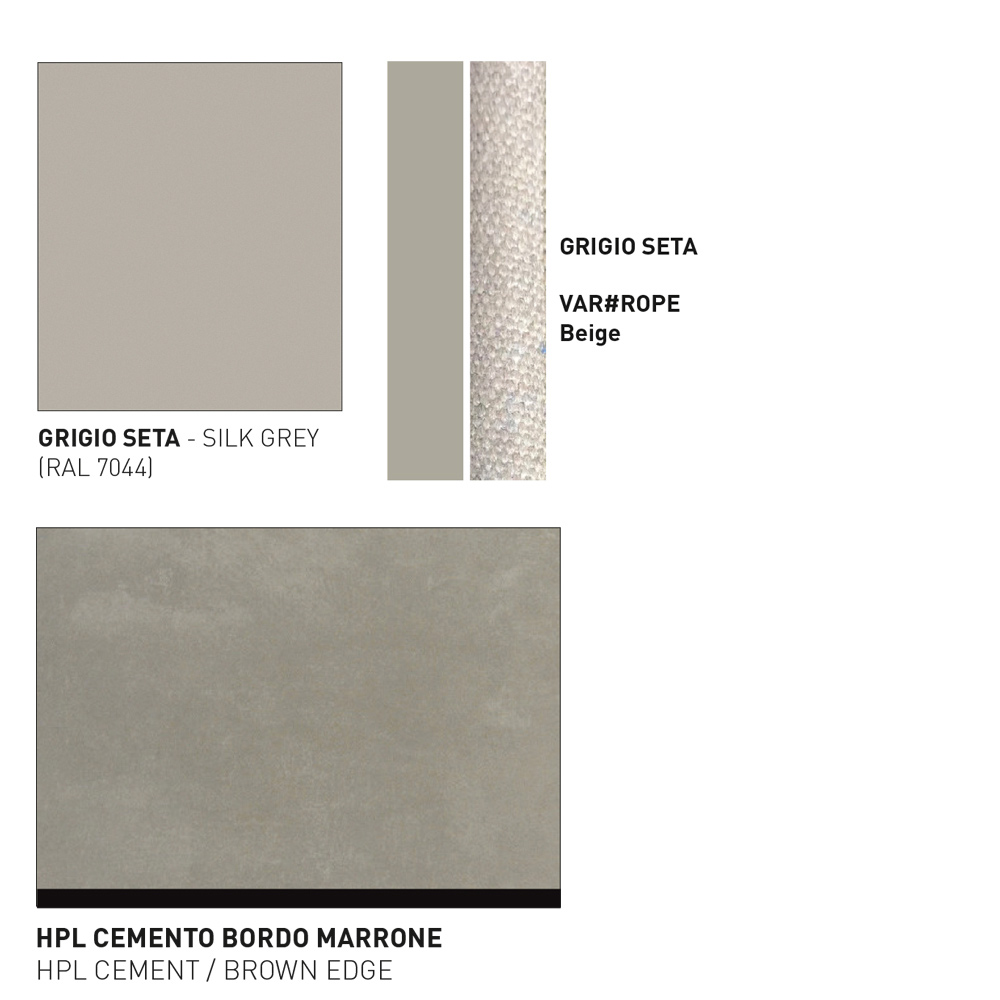 Acabados disponibles:- pata gris seda, tejido beige VAR # ROPE, parte superior de hpl de hormigón;