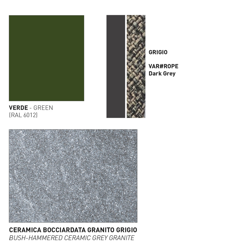 - pata verde, VAR # CUERDA tejido gris oscuro, tapa de cerámica abujardada granito gris;