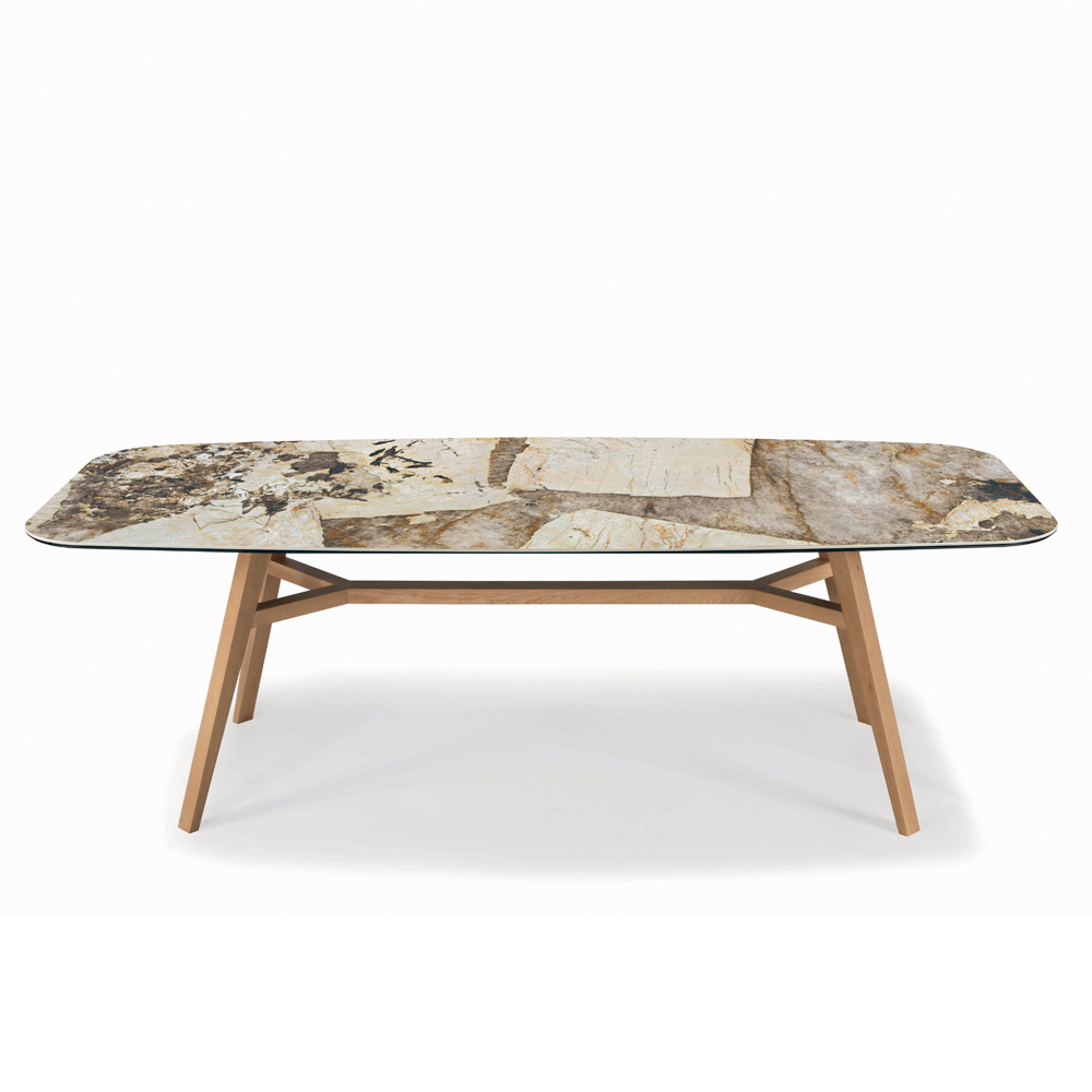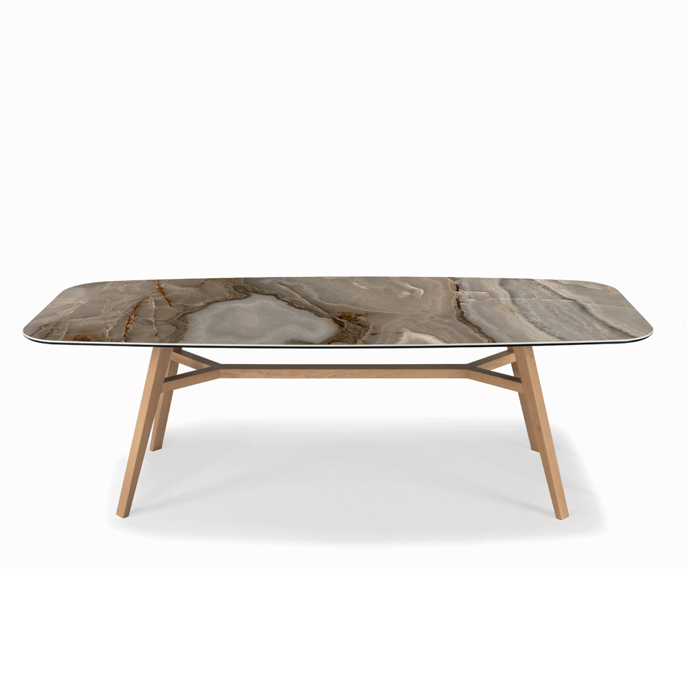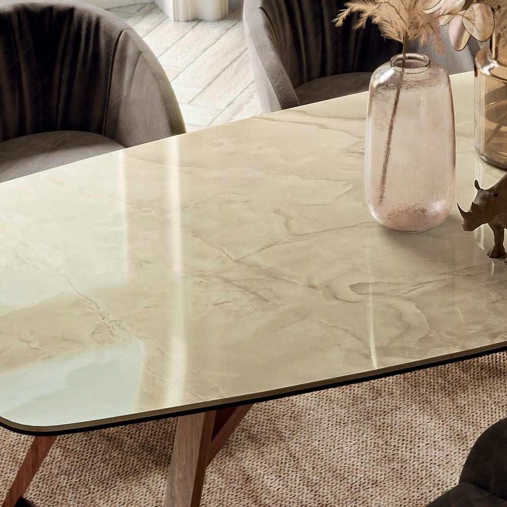 Mesa de salón fija en forma de barril con tapa de cerámica , biselado a 45° , base de madera de fresno acabado nogal Canaletto . Este producto de estilo moderno tiene como objetivo primordial poder ser utilizado a diario sin renunciar al diseño. La cadena de producción, desde la concepción hasta la producción, pasando por el control de calidad, se realiza íntegramente en Italia , para garantizar y preservar las características típicas del "saber hacer" italiano y la importancia del típico Made in Italy.