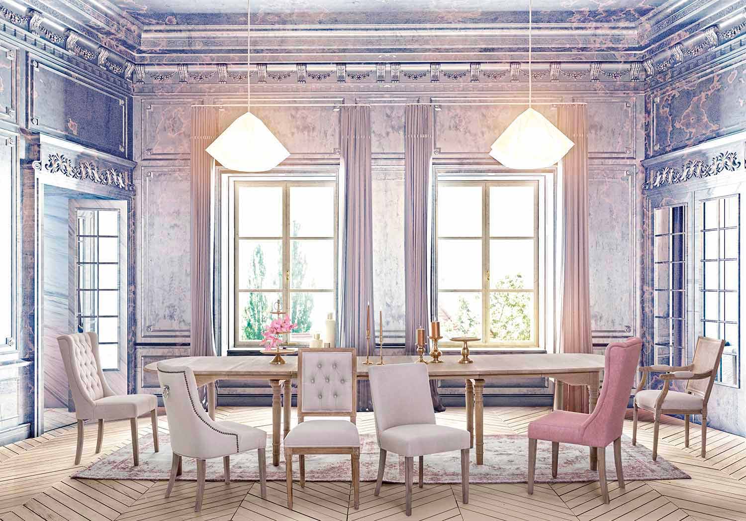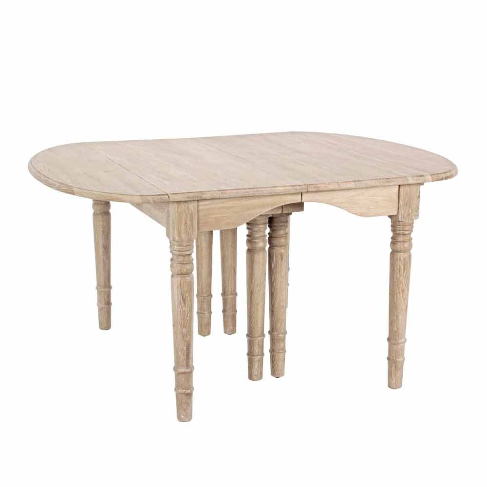 Mesa de comedor extensible hasta 382 cm fabricada en madera maciza de roble.