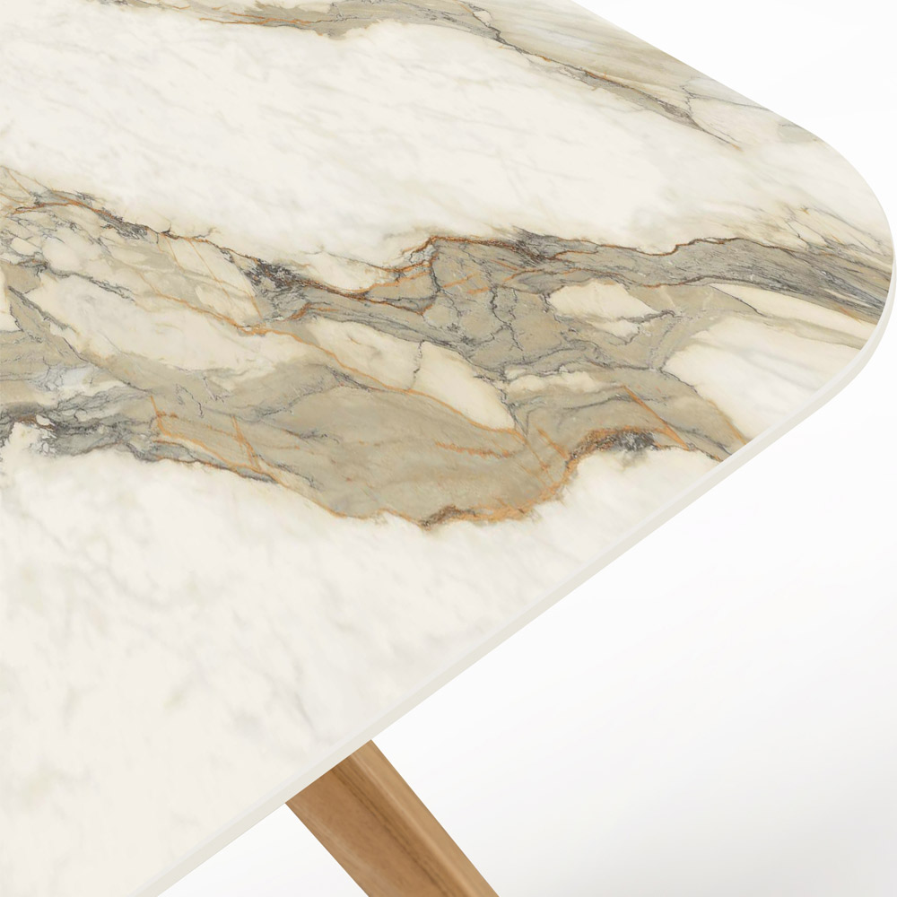 Mesa con Base de Madera y Tapa de Cerámica Calacatta Hermitage - Infinity