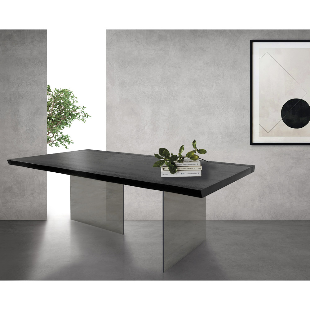 Mesa con Tapa Chapada en Roble Macizo y Base en Cristal Made in Italy - Noelia