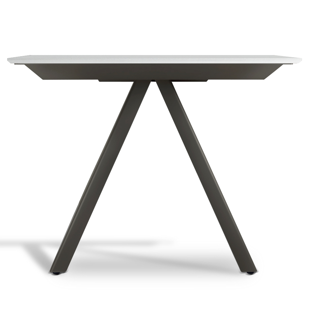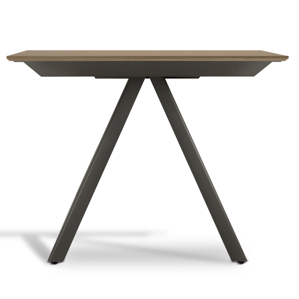 Consola de diseño extensible hasta 14 plazas en madera laminada y acero fabricada en Italia.