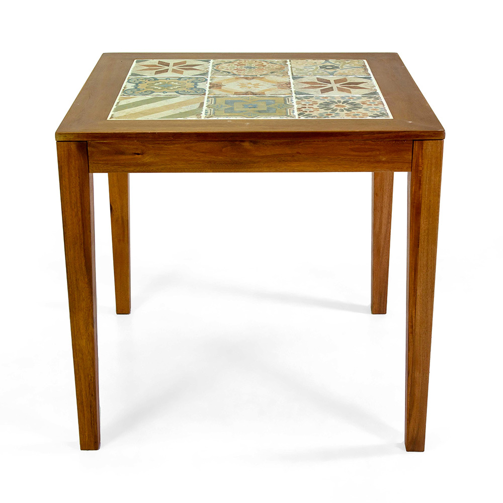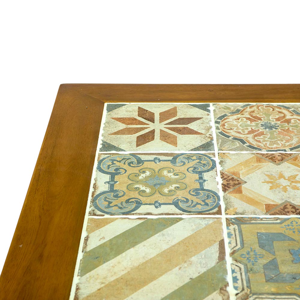 Descubre la mesa de comedor que combina elegancia rústica y arte tradicional en un exclusivo mueble. Esta hermosa mesa cuenta con una tapa de cerámica decorada, armoniosamente colocada en una sólida estructura de madera . Cada baldosa se selecciona cuidadosamente para crear un mosaico que evoca las tradiciones artesanales, convirtiéndola en una pieza única y fascinante.
