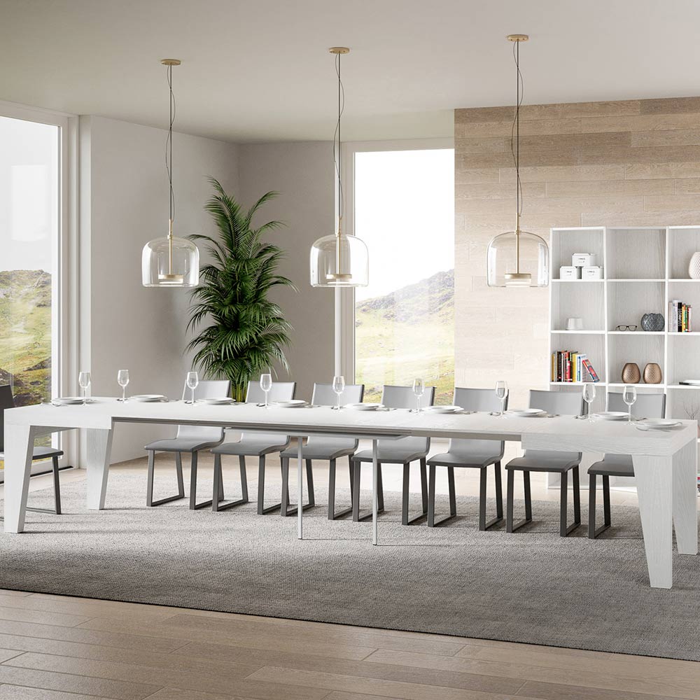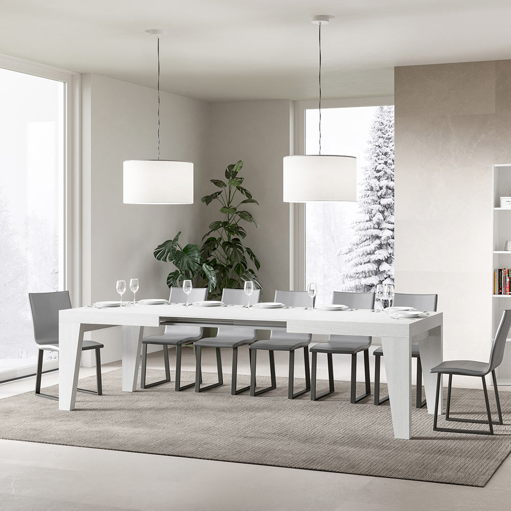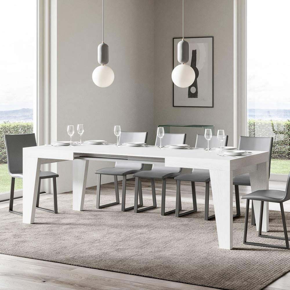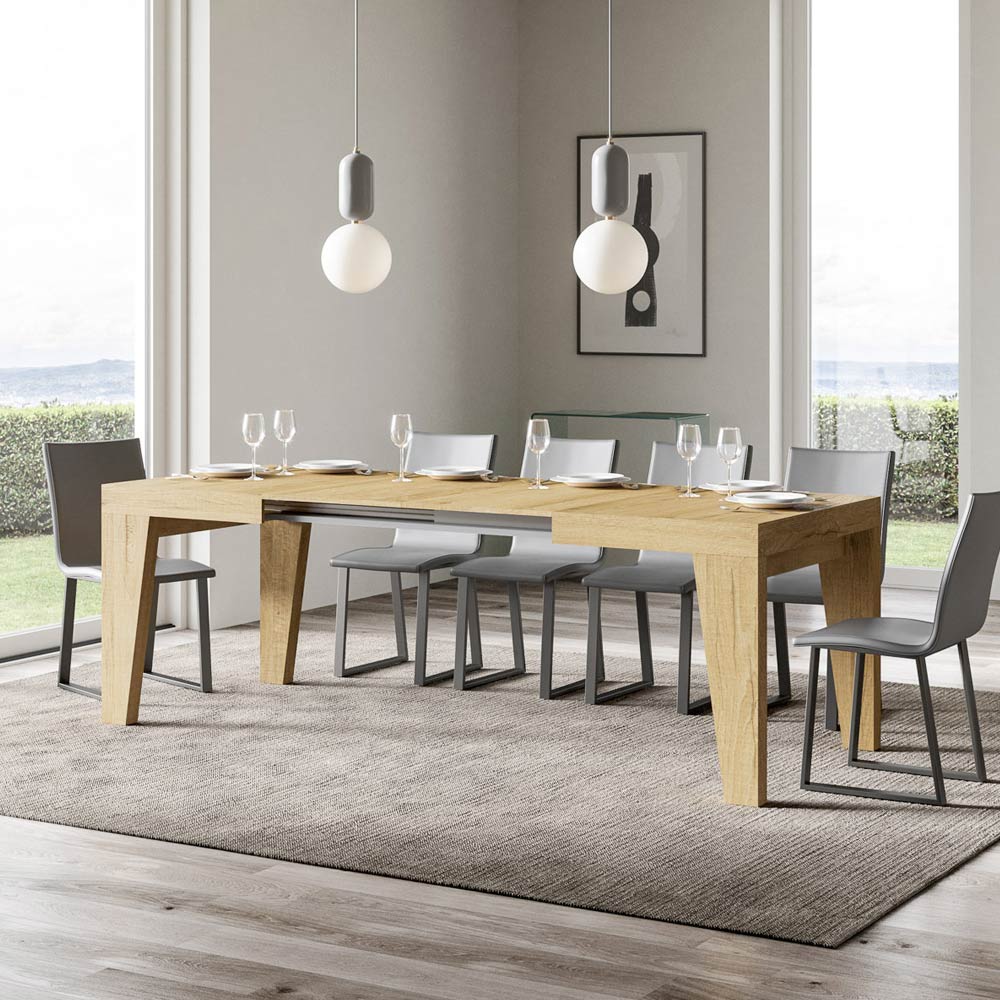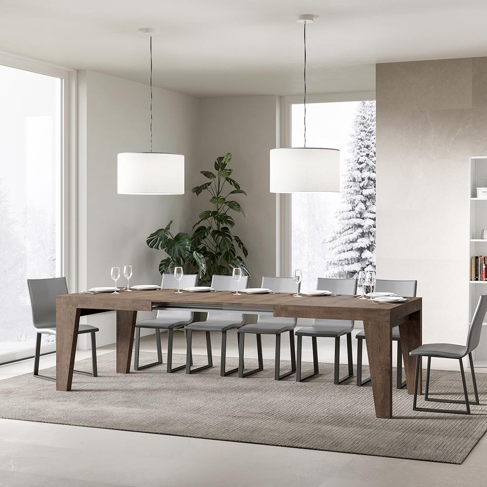 Mesa de comedor extensible fabricada con micropartículas de madera, totalmente Made in Italy. .
