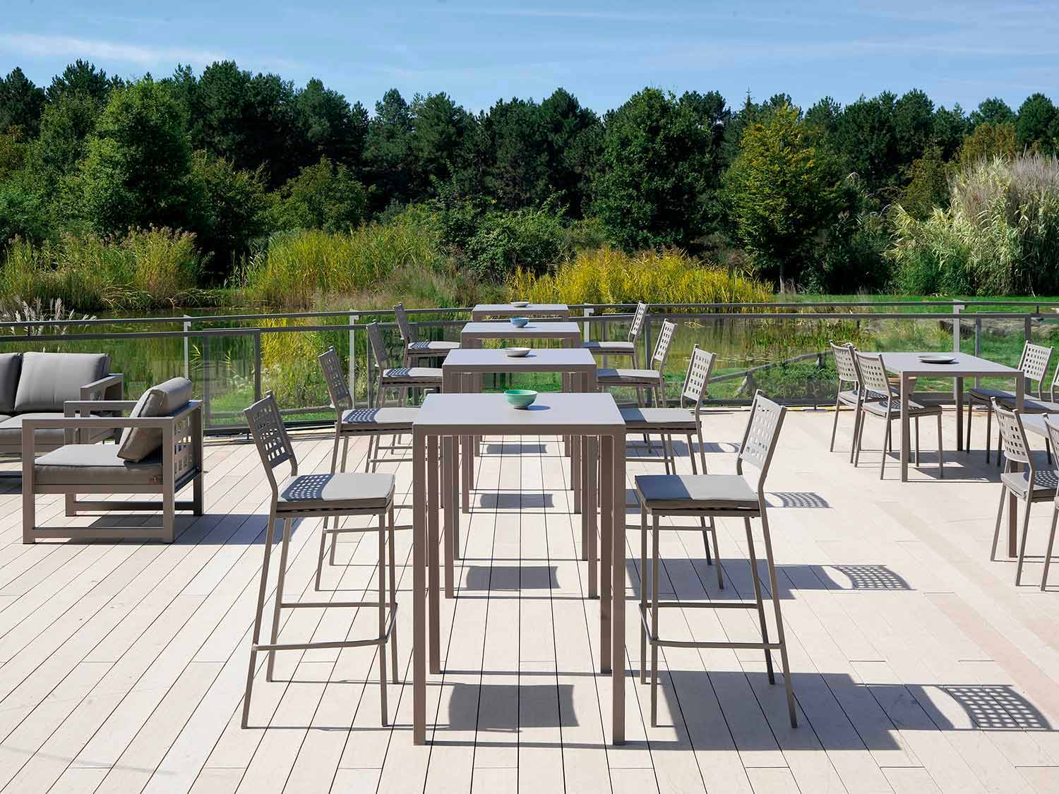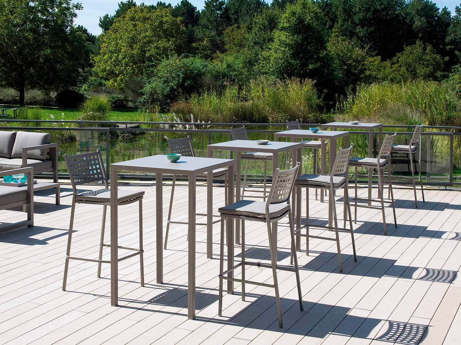 Mesa bar para exterior en hierro galvanizado pintado con polvos en polvo autonivelantes Fabricada en Italia.