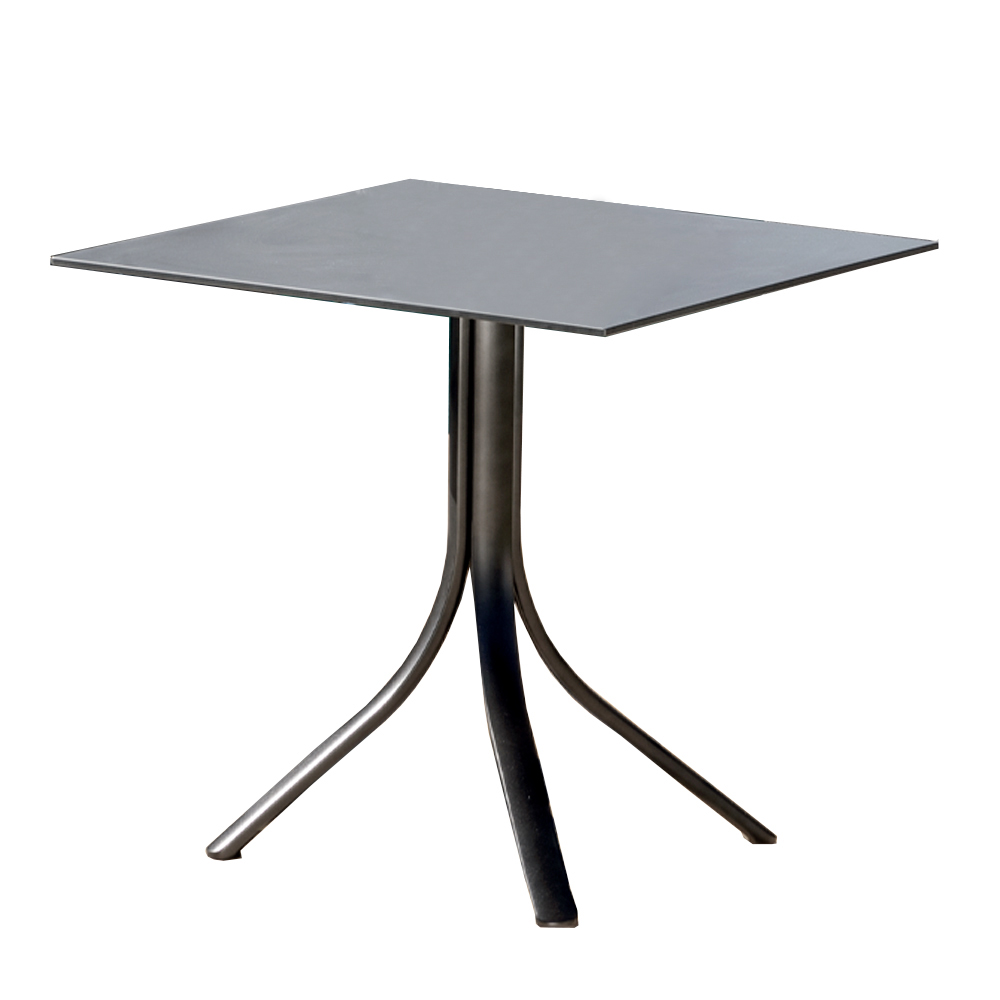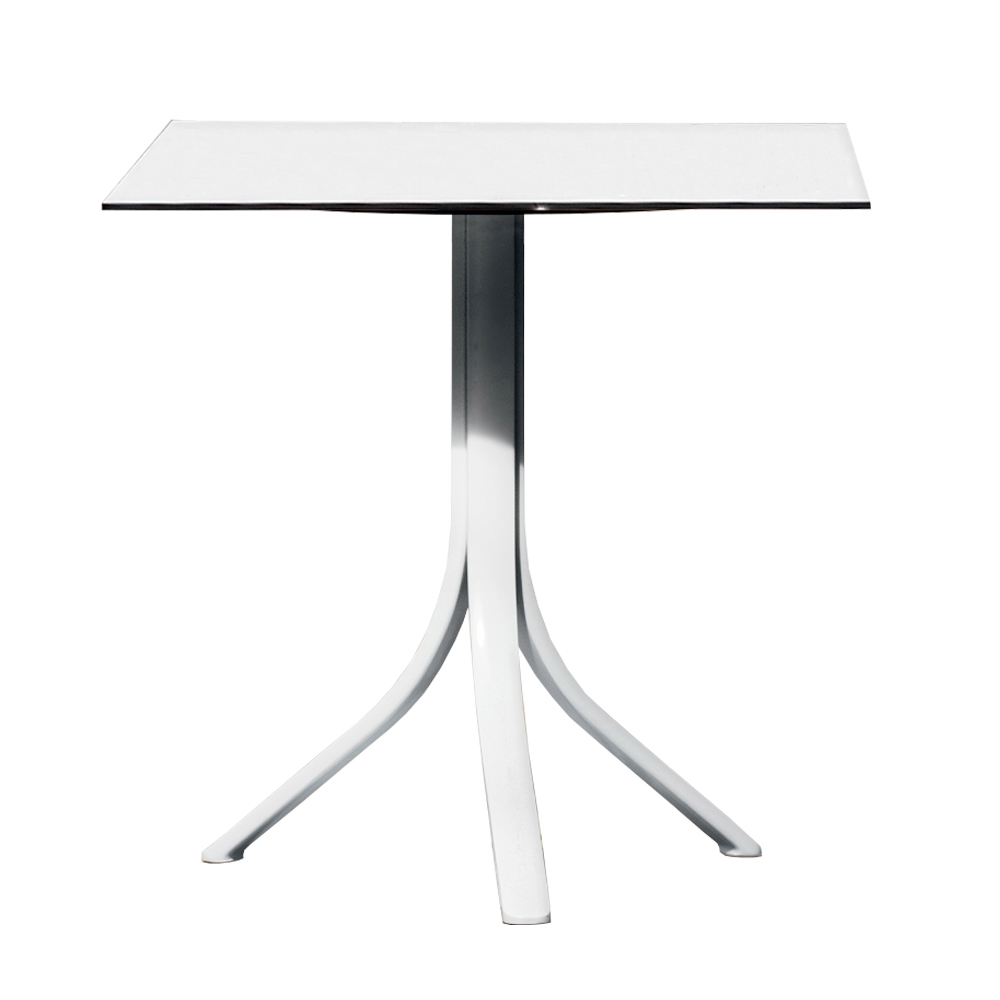 Características técnicas y materiales: La potencia de tres radios y plegable está hecha de aluminio con recubrimiento de polvo epoxi , combinado con la parte superior cuadrada de 10 mm de espesor en laminado HPL.