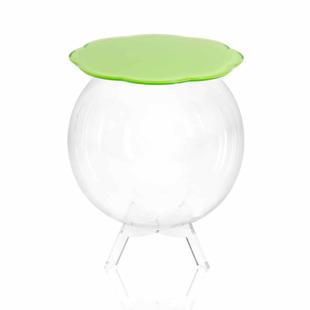Mesa de centro / contenedor verde redondo Biffy, diseño moderno hecho en Italia Mesa / contenedor de plexiglás con una estructura esférica que se puede utilizar como un jarrón para arreglos florales, como un acuario, como un contenedor para juguetes o como una canasta de lavandería. La transparencia de la mesa BIFFY la convierte en una pieza con un diseño discreto que se puede colocar fácilmente en el hogar. El estante está hecho de plexiglás de PMMA 100% de polímero verde virgen El plexiglás es a prueba de golpes, indeformable, inalterable y térmico. El brillo y el brillo se mantienen constantes y sin cambios a lo largo del tiempo. El plexiglás de PMMA de polímero virgen utilizado por es no tóxico, hipoalergénico, inodoro y antibacteriano. 100% reciclable Diseñado, diseñado y fabricado en Italia, con materiales italianos.