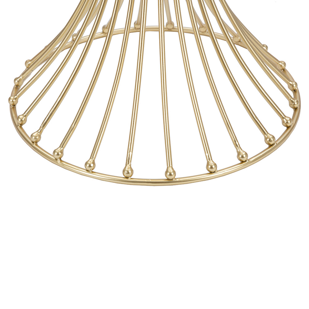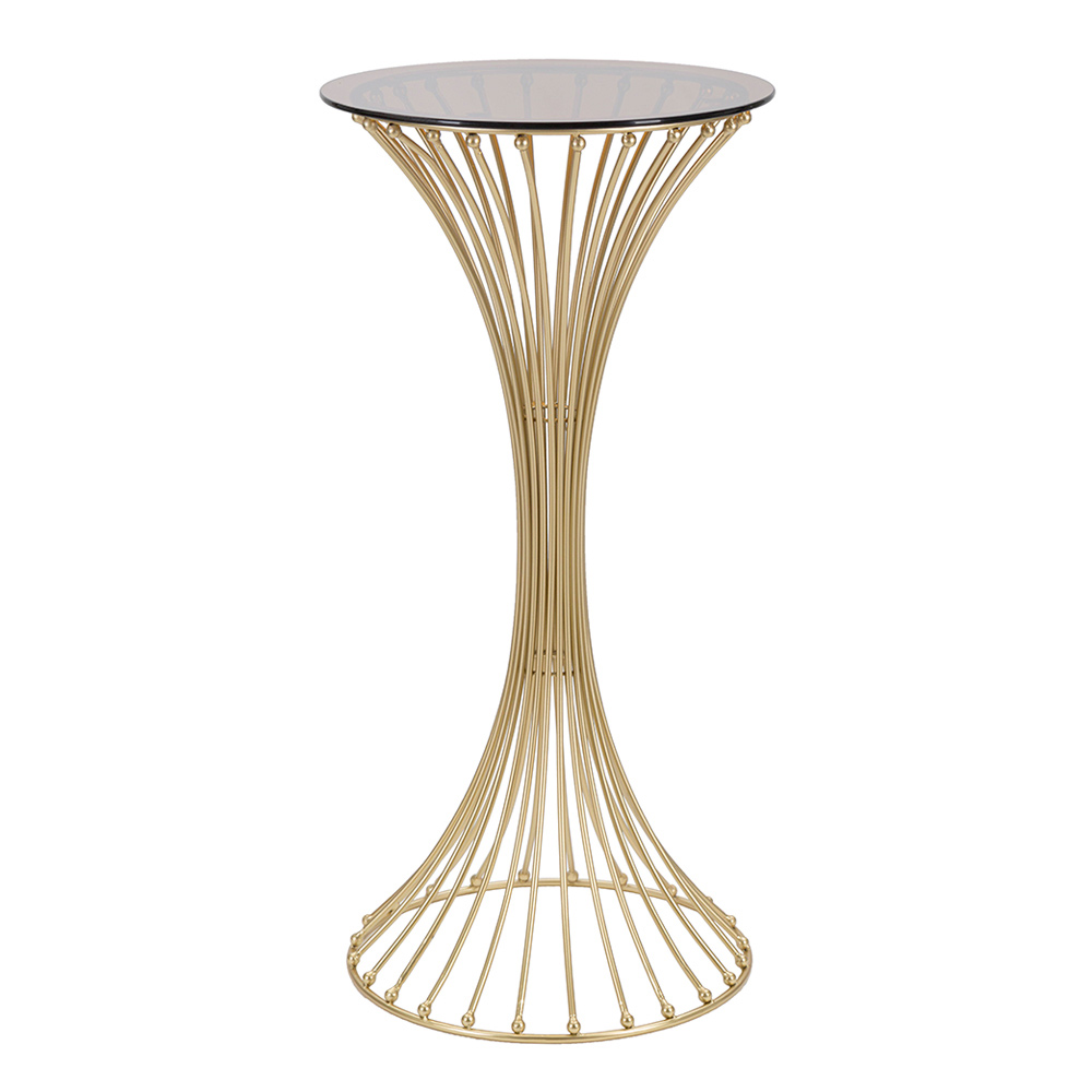 Esta mesa de centro alta es un claro ejemplo de elegancia y diseño contemporáneo . La base dorada se eleva en una elegante maraña de líneas que recuerdan las delgadas ramas de una planta, sosteniendo una tapa circular de cristal. La combinación de vidrio y hierro dorado no sólo realza la belleza visual sino que también habla de la calidad de los materiales, asegurando durabilidad y estabilidad .