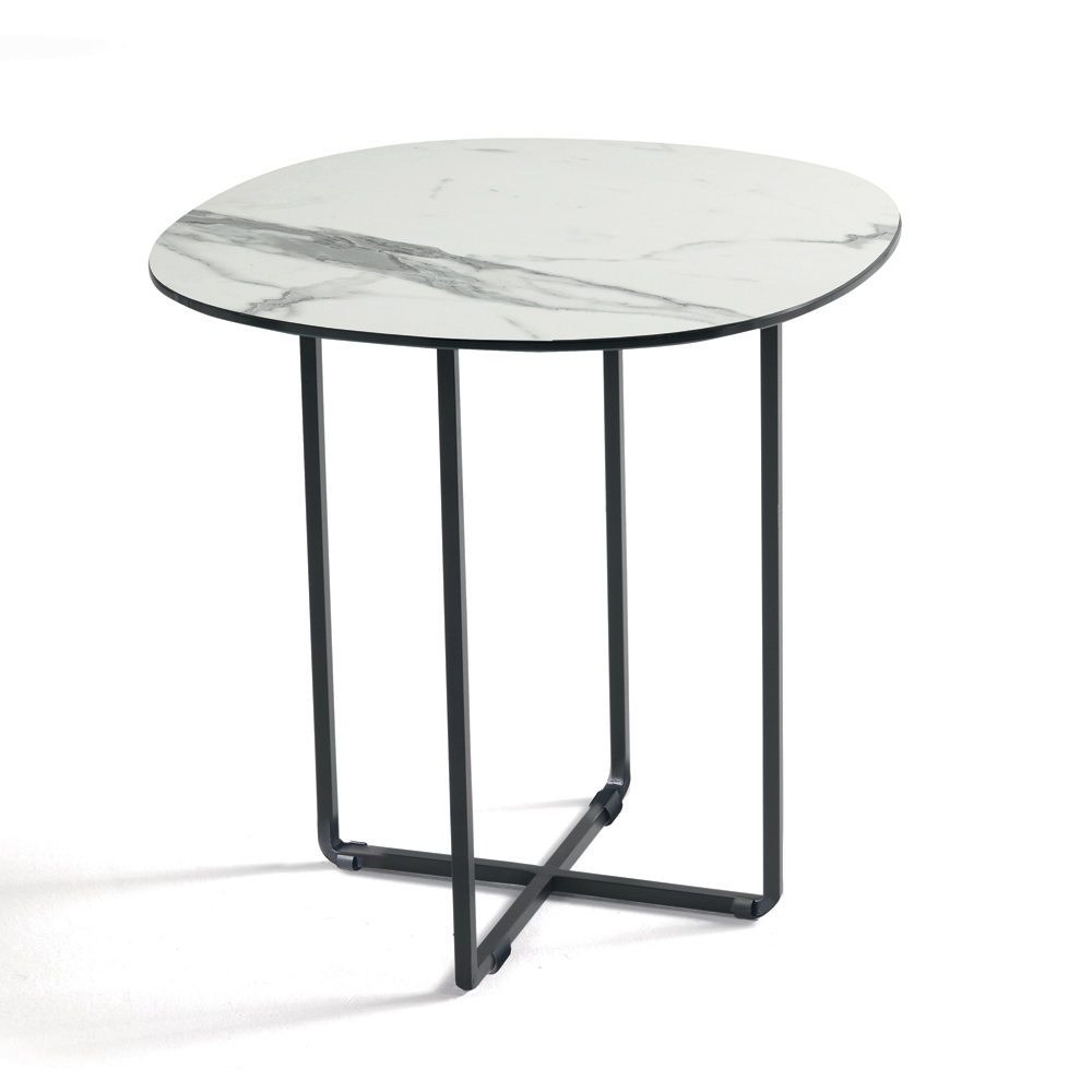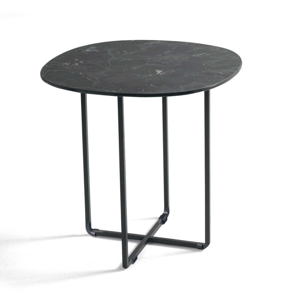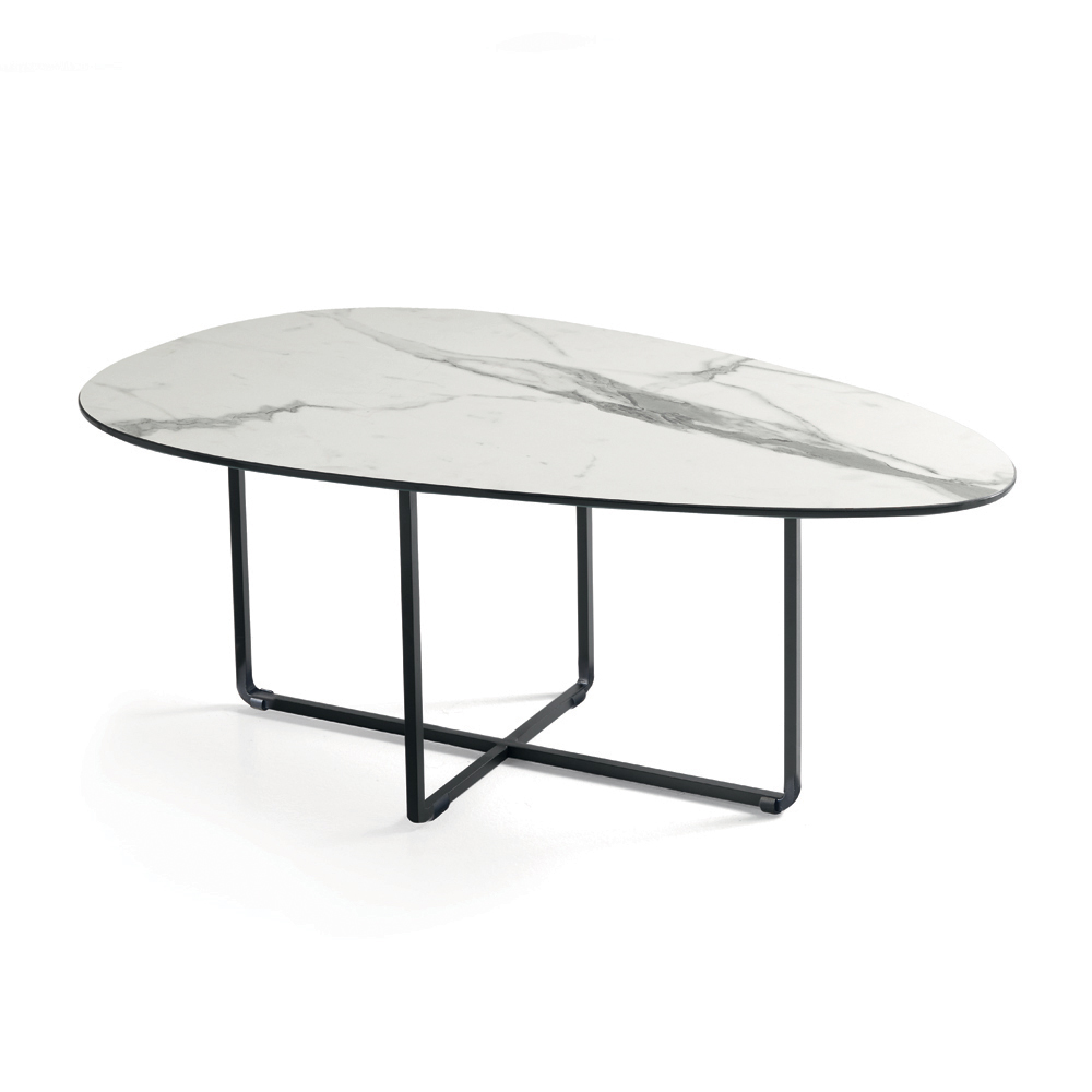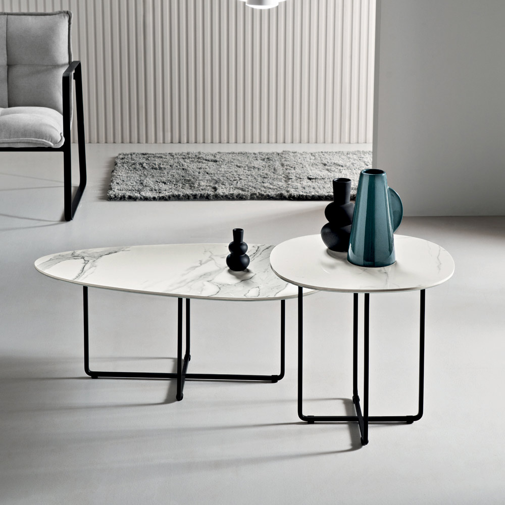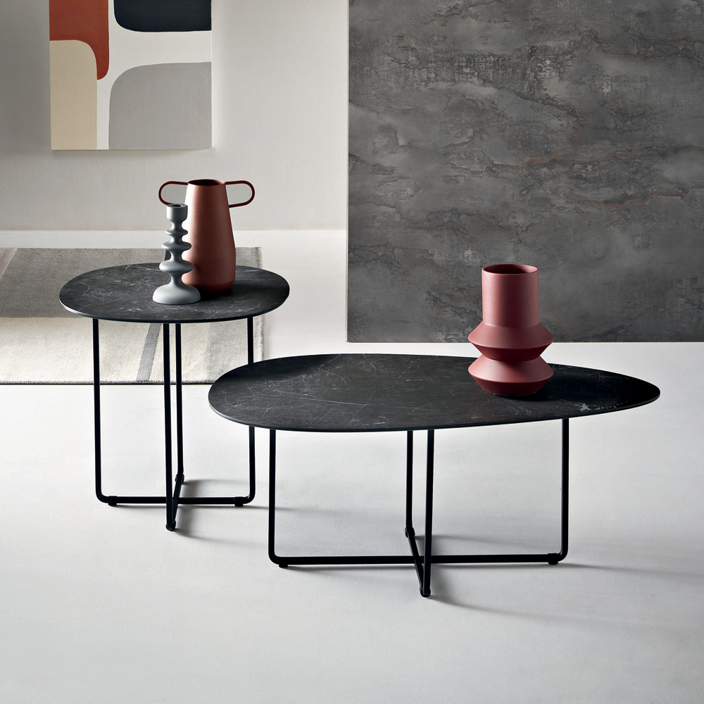 La estructura, de metal pintado , es sólida pero visualmente ligera, lo que permite que se integre armoniosamente en espacios modernos. Sus formas depuradas y bien proporcionadas le confieren a la mesa una estética elegante y atemporal, perfecta para diversos estilos de decoración.