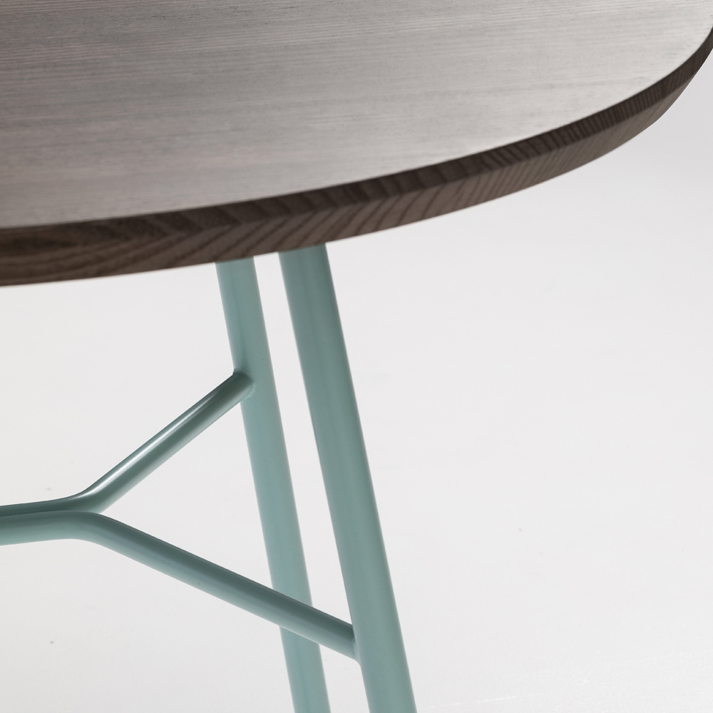 Mesa de centro completamente hecha en Italia con tapa redonda de madera maciza y estructura de metal pintado . Un mueble que expresa a través de sus formas simples y minimalistas toda la elegancia y majestuosidad de la madera maciza y la modernidad de la base metálica, creando una perfecta combinación de estilos y dando vida a una solución de decoración capaz de conquistar el centro. de atención gracias a su personalidad contemporánea y su carácter ecléctico . Un mueble original y versátil que surge de la necesidad de amueblar de forma exclusiva y refinada los ambientes domésticos pero también los lounges de hoteles y ambientes contract como bares y restaurantes.