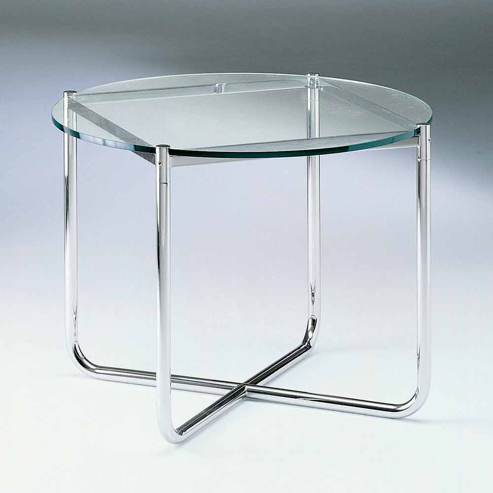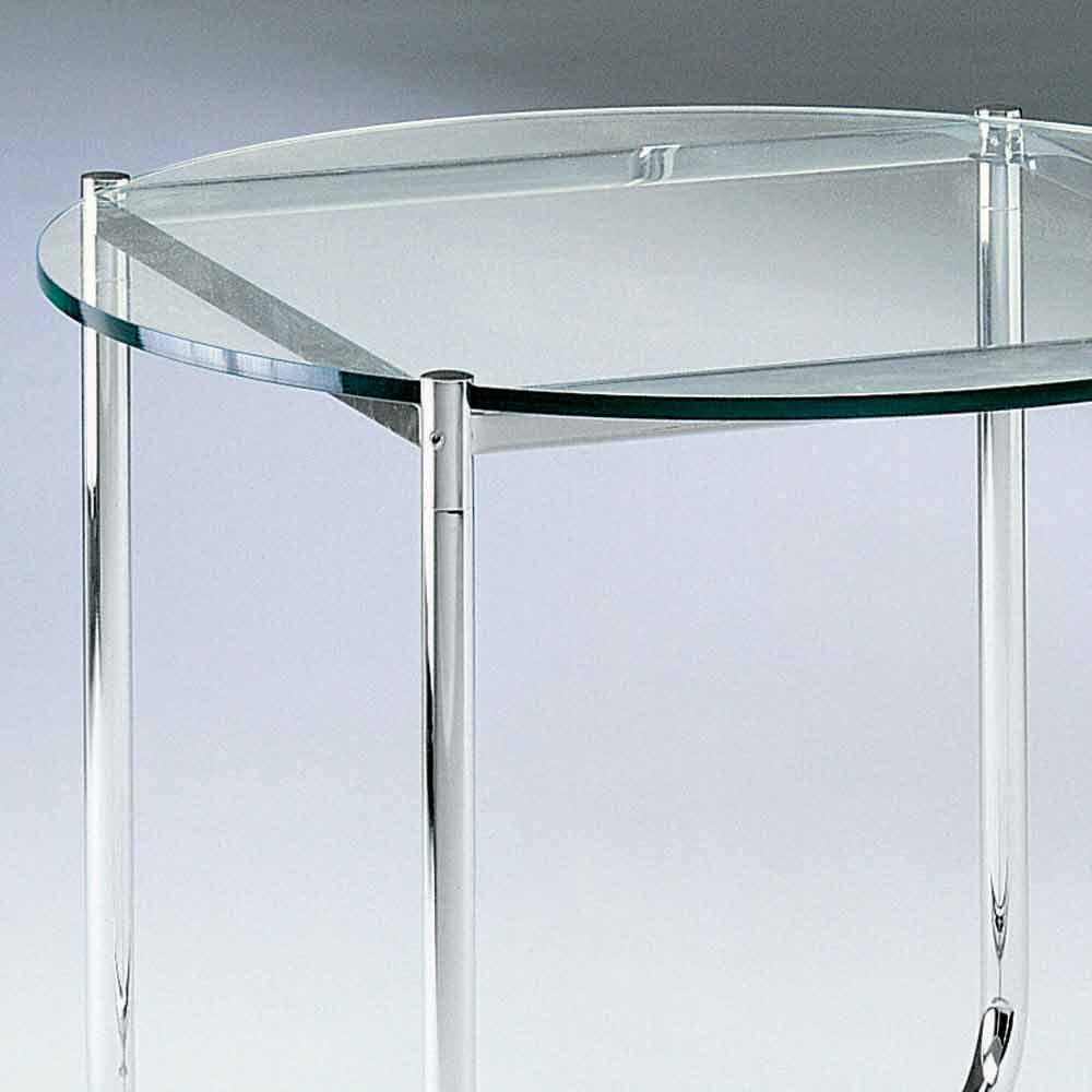 Mesa de centro redonda en vidrio templado y acero Made in Italy.