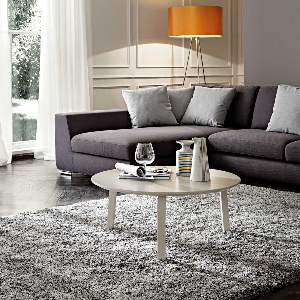 Mesa de centro de salón redonda realizada en madera maciza lacada lisa con tapa redonda en mdf lacado a juego. Una solución de decoración producida con materiales de alta calidad a través de una elaboración 100% Made in Italy para ofrecer un producto sólido, resistente y al mismo tiempo de fuerte impacto visual capaz de caracterizar con estilo y personalidad cualquier zona de estar de gusto contemporáneo. Una estética sencilla y versátil enfatiza las formas y líneas que recorren toda su figura, dando vida a una mesa de centro para el salón extremadamente ecléctica también gracias a las sobrias tonalidades de color propuestas. La elección de utilizar madera para su fabricación confiere al producto su alma majestuosa e imponente alma junto con una excelente durabilidad para un resultado tan funcional como excusivo.