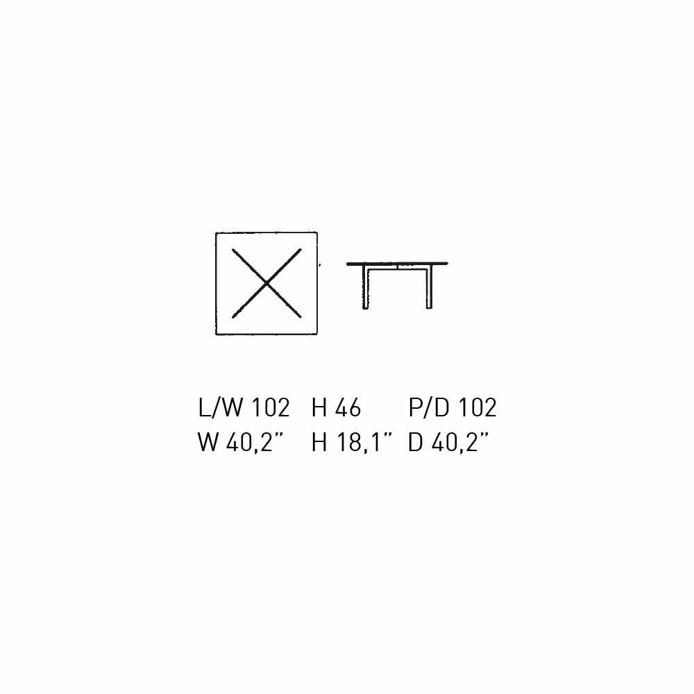 Mesa de centro con tapa cuadrada de vidrio templado Made in Italy.