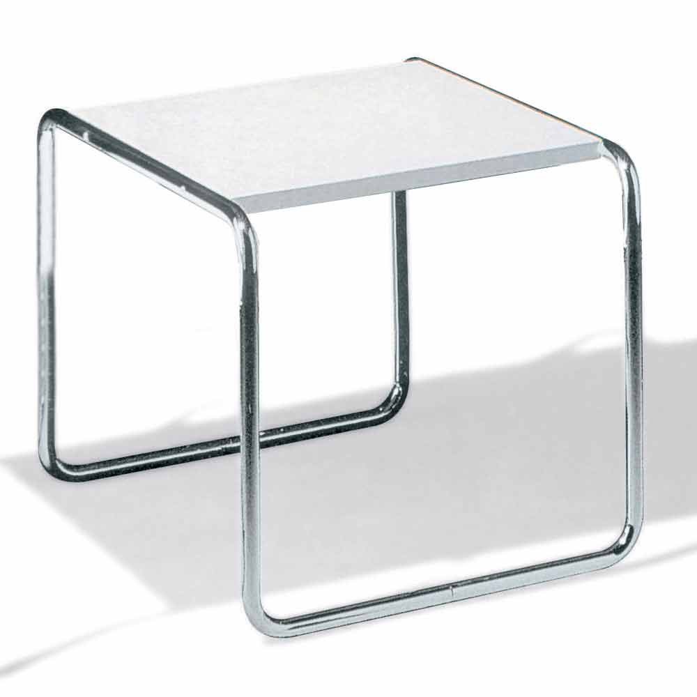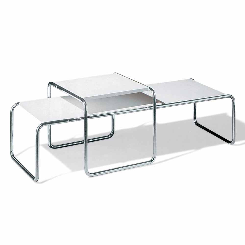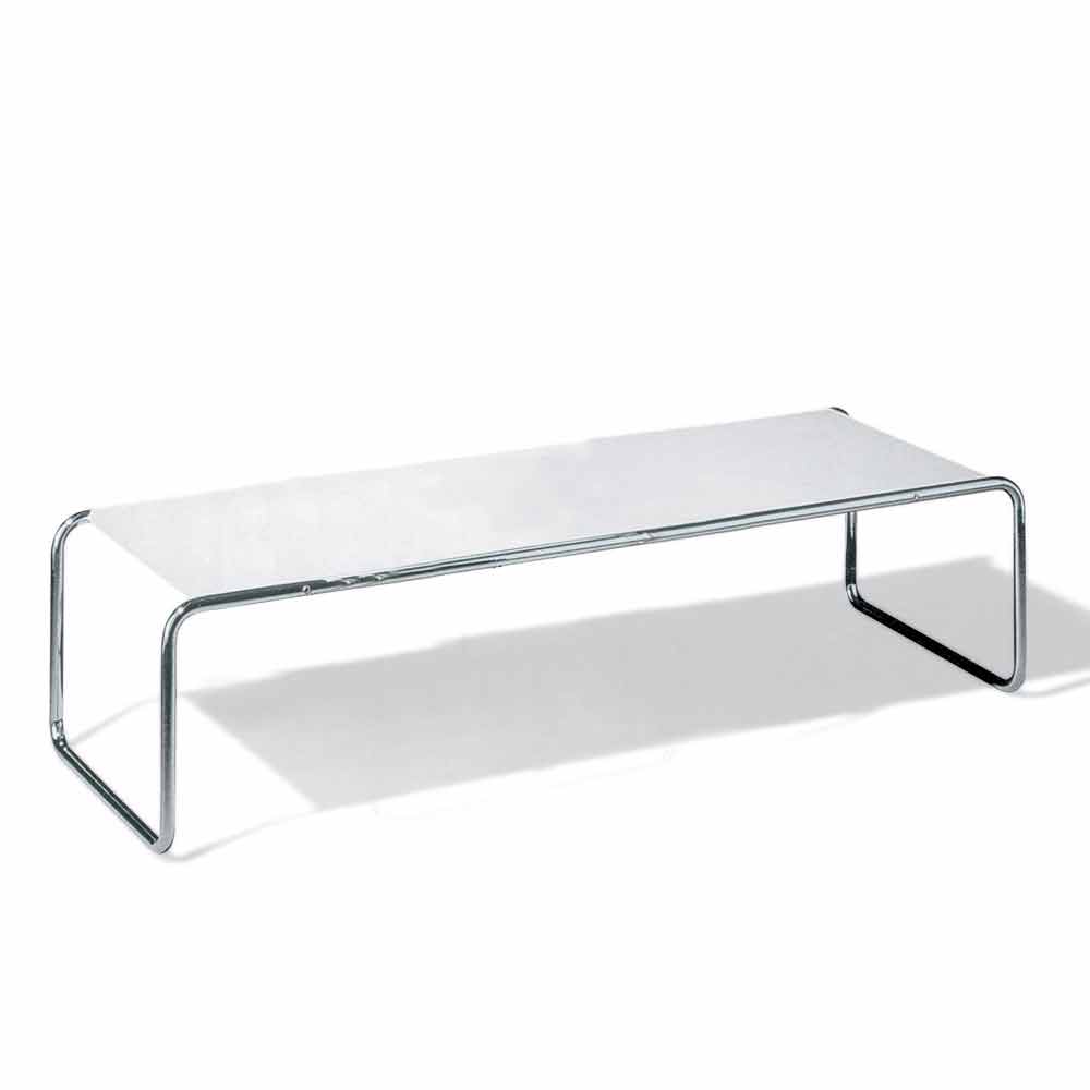 Mesa de centro con tapa laminada y base de acero fabricada en Italia.