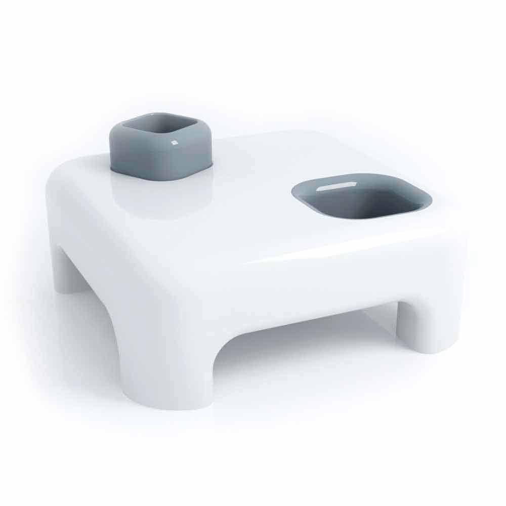 Un "cubo" reversible está alojado en un compartimento hueco y parece haber sido extraído del agujero en el otro extremo del estante. Estos tres elementos aportan varias funciones adicionales: elevador, jarrón o contenedor para el "cubo". Vaciador de bolsillo para la huella tallada, mientras que el hueco puede convertirse en jarrón o compartimento de almacenamiento (botellas, revistas, plantas...).