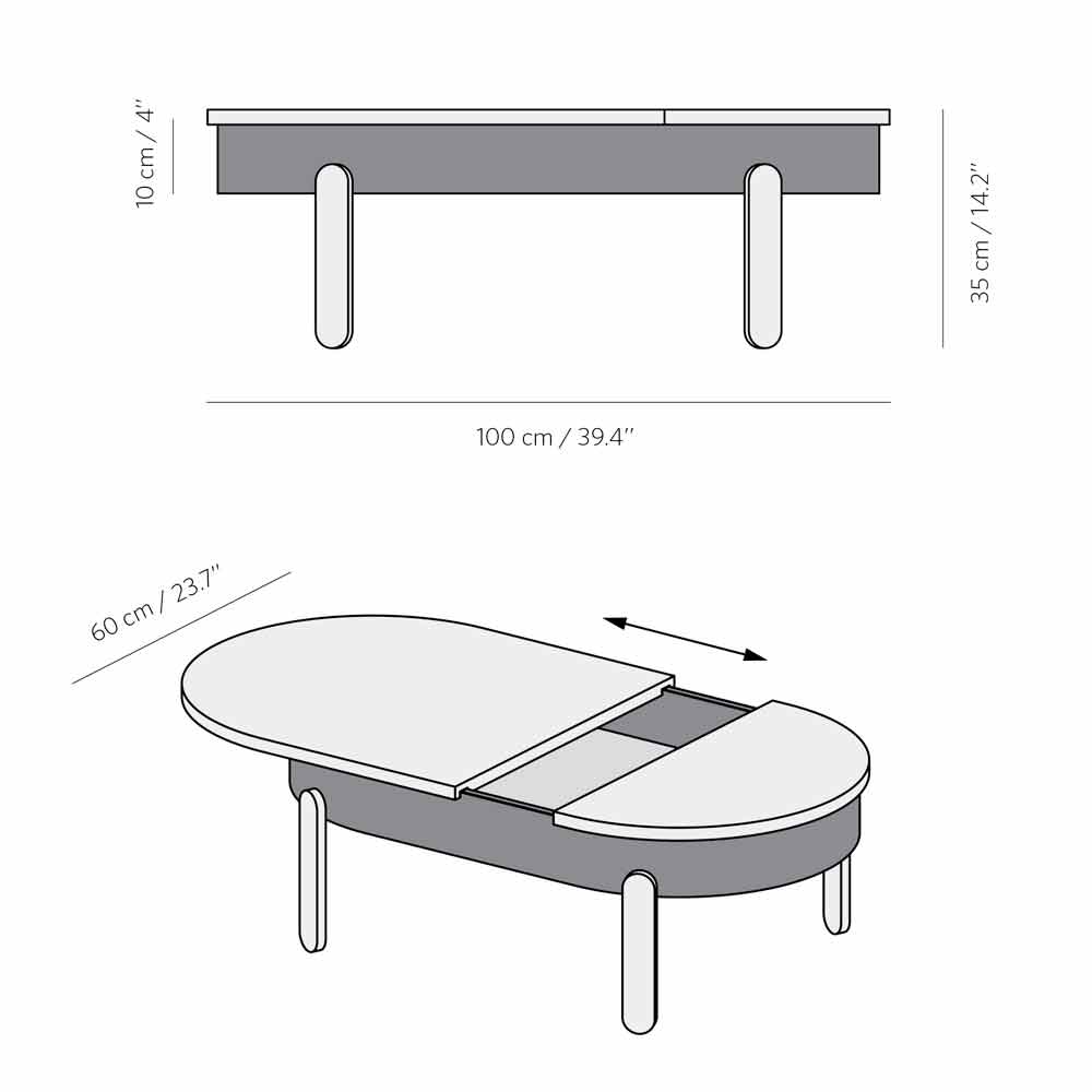 Medidas (mesa cerrada) : L 100 x P 60 x H 35 cm