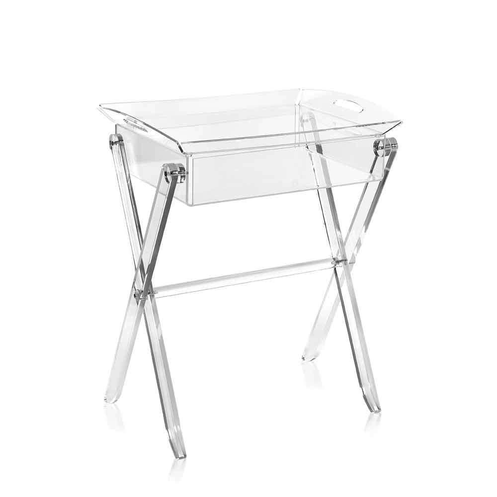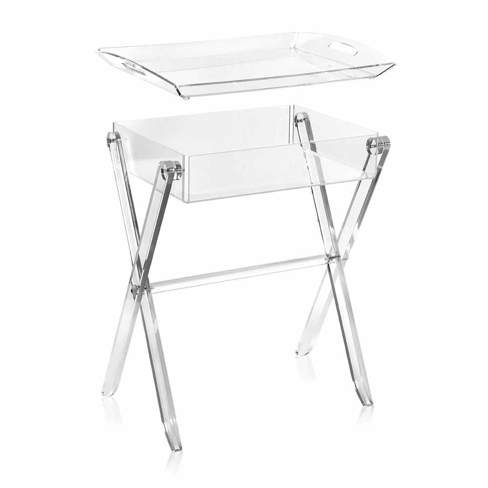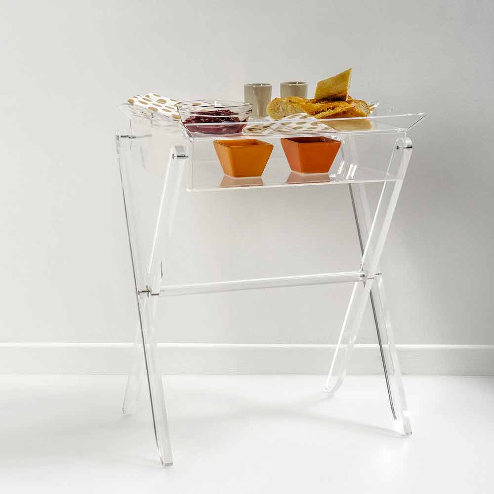 Mesa de centro de diseño italiano Olivia made-in-Italy Discreta y elegante la mesa de centro con doble estante: una base donde colocar los platos, alimentos o periódicos, y un estante superior, que también es una bandeja útil para servir el desayuno en la cama, café o té. La bandeja de comida está hecha totalmente de plexiglás de PMMA transparente de 100% de polímero virgen. Las características físico-técnicas del plexiglass (a prueba de golpes, indeformables, inalterables, aislantes del calor) hacen de este artículo un mueble funcional y funcional, adecuado para cualquier entorno. El brillo y el brillo se mantienen constantes y sin cambios a lo largo del tiempo. El plexiglás de PMMA de polímero virgen utilizado por es no tóxico, hipoalergénico, inodoro y antibacteriano. 100% reciclable Diseñado, diseñado y fabricado en Italia, con materiales italianos.