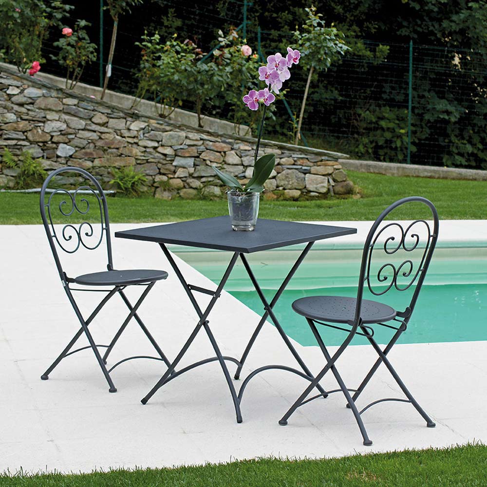 Mesa de jardín plegable con tapa y base realizada en hierro con acabado gris antracita . Un mueble caracterizado por una estética simple y funcional con forma cuadrada. Este aspecto lo convierte en una solución de decoración ideal para quienes aman pasar su tiempo libre al aire libre y no quieren renunciar a un toque de estilo exclusivo y original .