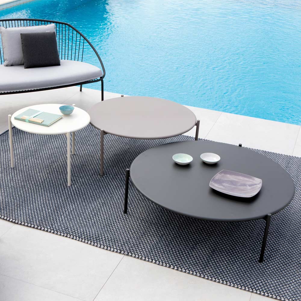 Mesa de exterior fabricada en Italia en acero galvanizado . El especial procesamiento del material le confiere una mayor resistencia a la corrosión causada por agentes atmosféricos como la acidez de la lluvia y la salinidad, lo que la hace ideal para cualquier espacio exterior y facilita su mantenimiento y limpieza.