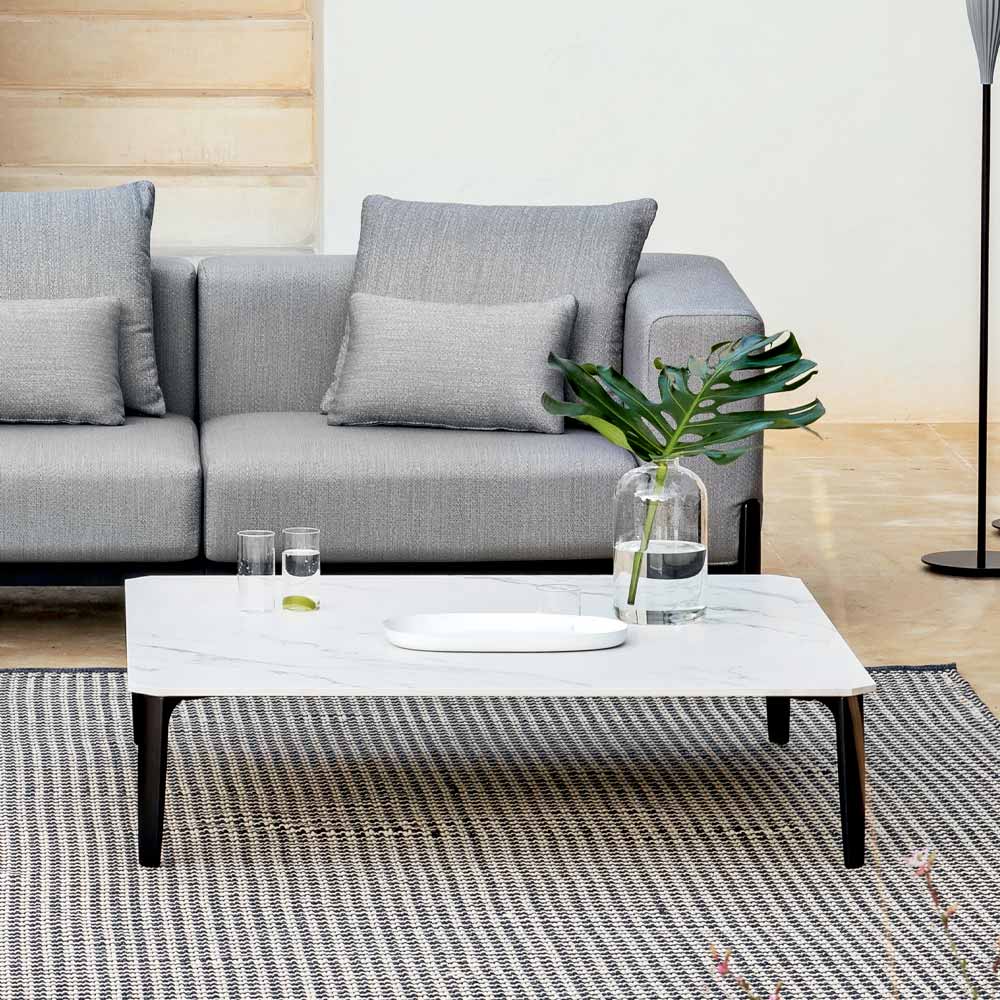 Mesa baja de exterior fabricada en aluminio y gres porcelánico en varios acabados, artículo de calidad made in Italy.