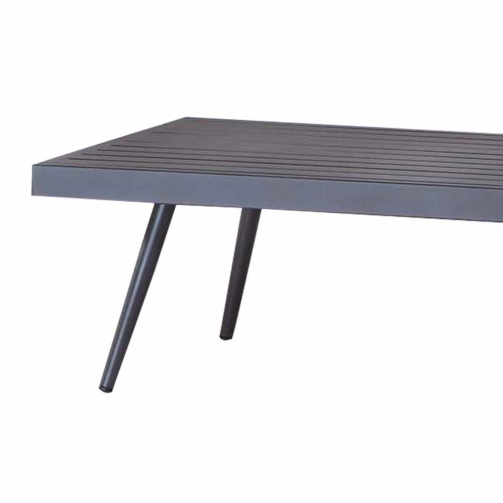 Mesita de exterior realizada con sobre y estructura en aluminio pintado acabado antracita. Versatilidad y esencialidad son las principales características que mejor describen este complemento de decoración para espacios exteriores que, gracias a los matices sobrios y las formas sencillas que lo perfilan, se adapta perfectamente a cualquier situación de decoración aportando un plan decorativo práctico. soporte y un elemento decorativo ecléctico . Además, los materiales utilizados garantizan un producto resistente y de excelente durabilidad, por lo que es una elección perfecta para quienes buscan una mesa de centro que garantice funcionalidad y diseño .