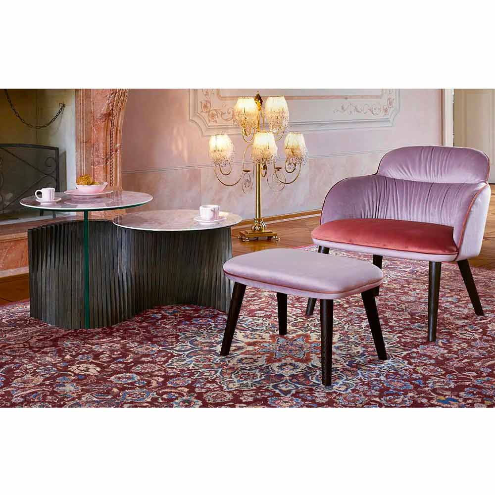 Mesa de centro de diseño en gres de mármol pulido y madera de fresno, un fino producto Made in Italy.